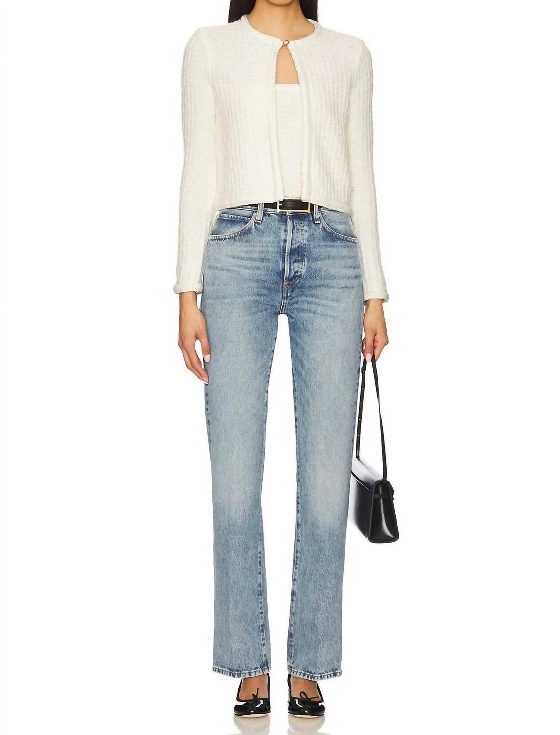 Откройте для себя комплект кардигана Blaise от ASTR - элегантное дополнение к вашему гардеробу в шикарном кремовом цвете. Этот кардиган с длинными рукавами украшен фактурным узором, контрастной плетеной отделкой и застежкой на жемчужные пуговицы по центру горловины, что добавляет ему изысканности. Изготовлен из хлопковой смеси (пряжа 1 - 65% хлопок, 35% нейлон и пряжа 2 - 100% хлопок). Длина 48 см. Размер маломерит, поэтому рекомендуем выбирать на размер больше для идеальной посадки. Только химчистка.