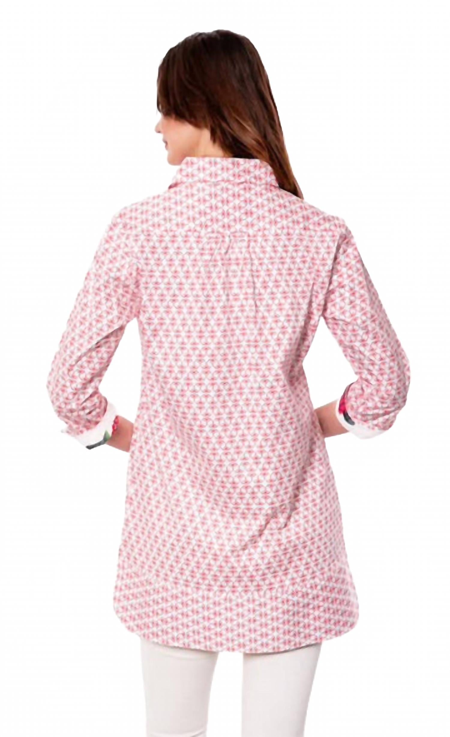Откройте для себя универсальное очарование этой блузки-туники, которая прекрасно сочетается как с другими нарядами, так и в качестве самостоятельного образа. Ее изящный силуэт и стильные детали делают ее незаменимой вещью в гардеробе. Дополните свой летний гардероб туникой Vail от Dizzy-Lizzie с игривым принтом «Мини-розовые пальмы». Эта модель с рукавами три четверти и воротником-стойкой идеально сочетает в себе комфорт и стиль бохо-шик. Узорчатая туника застегивается на застежку, что обеспечивает непринужденность. Проникнитесь беззаботным настроением в этом сезоне и наслаждайтесь комплиментами все лето.