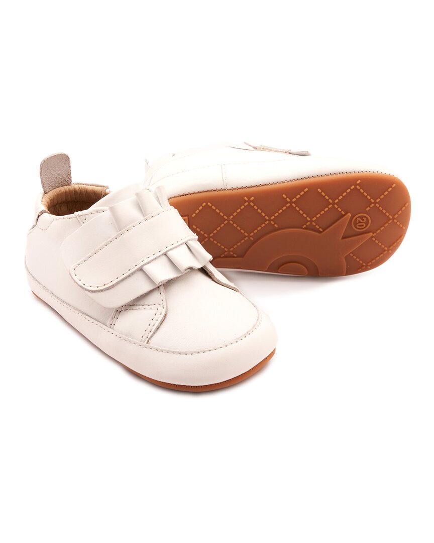 Представляем кожаные кроссовки Old Soles Frilly - стильное и удобное дополнение к коллекции обуви вашего малыша. Эти кроссовки, созданные известным брендом Old Soles, известным своей продуманной детской обувью, идеально подойдут активным малышам. Эти кроссовки, выполненные в очаровательном цвете Snow Leather с ремешком-оборкой, оснащены регулируемой застежкой Velcro для надежной посадки. Кожаная стелька и резиновая подошва обеспечивают длительный комфорт и поддержку маленьких ножек. Импортируемые из-за высокого качества и стиля, эти кожаные кроссовки Old Soles Frilly - незаменимая вещь для любого малыша.