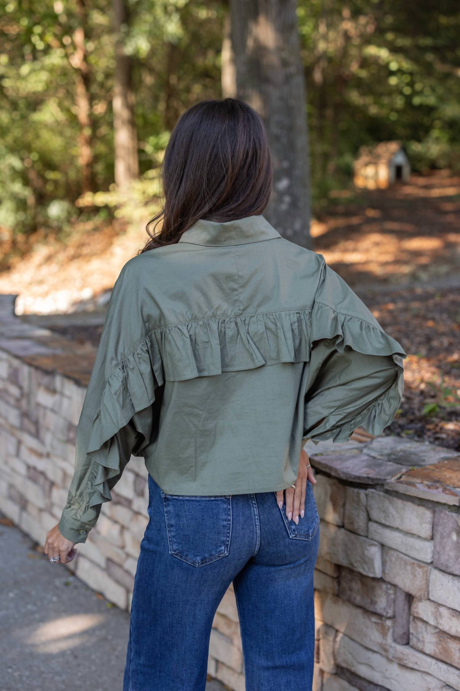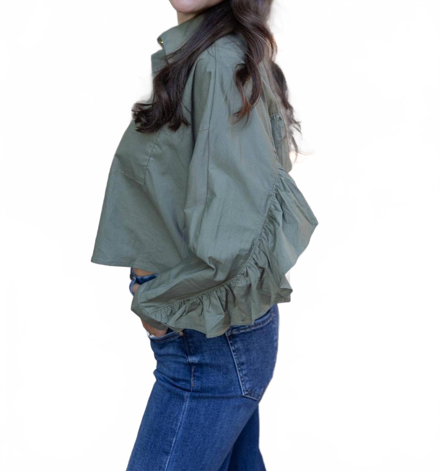 Подчеркните свой стиль с помощью топа из поплина на пуговицах от Forever - шикарного аксессуара оливкового цвета с длинными рукавами «летучая мышь» и причудливой оборкой. Этот полуукороченный топ из 97% хлопка и 3% спандекса обеспечивает свободную посадку и комфорт благодаря эластичности. Застежка на пуговицы, игривый асимметричный закругленный низ, воротник и нагрудный карман спереди придают модели особый шарм. Этот топ требует бережной стирки и сушки на подкладке, чтобы сохранить легкость и непрозрачность ткани.