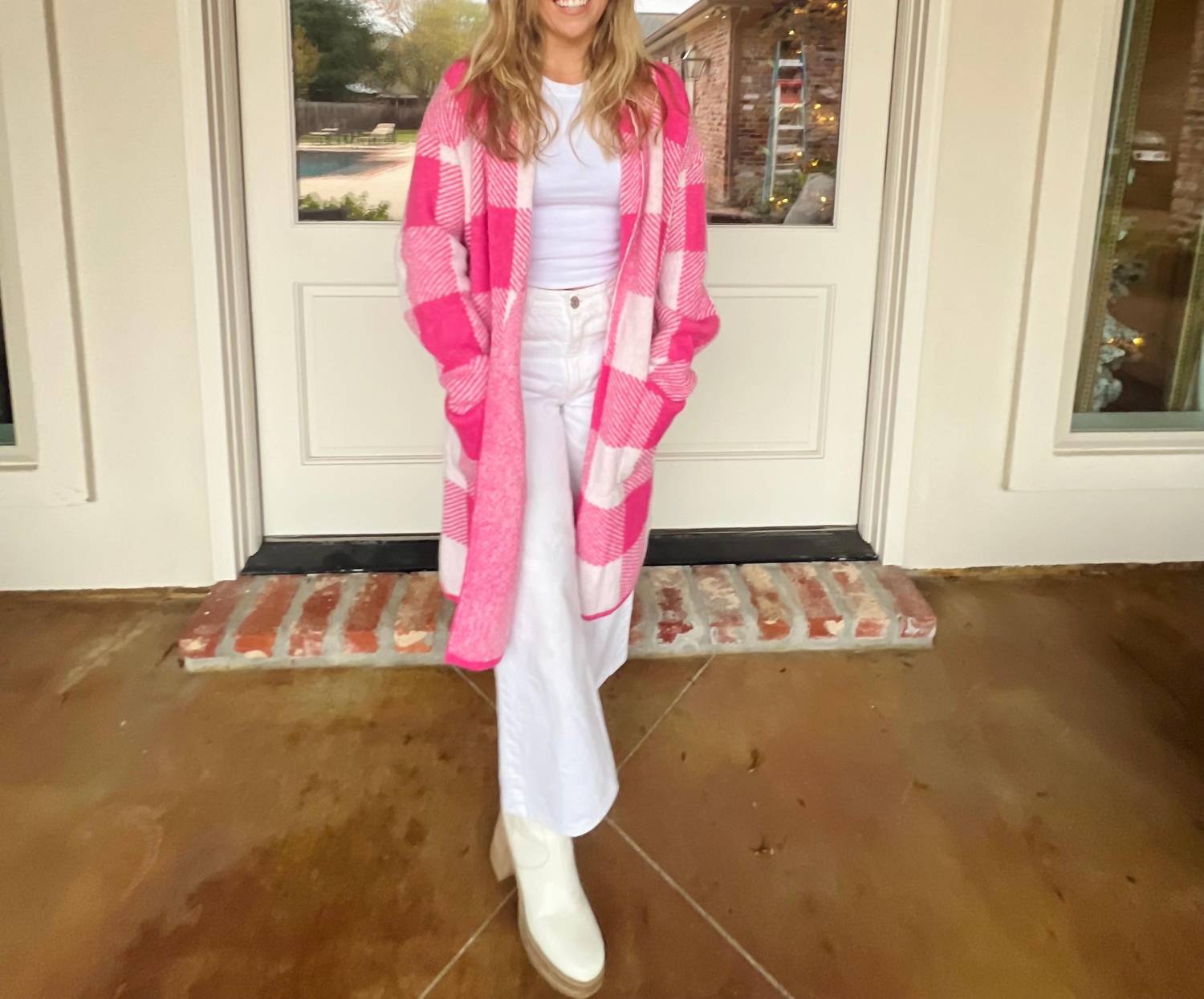 Дополните свой гардероб кардиганом Angel от Blue B - незаменимой вещью для любой модницы. Этот очаровательный кардиган в розово-белую клетку с рисунком в клетку «гингем», изготовленный из 85% полиэстера и 15% вискозы, имеет длинные рукава и практичные передние карманы, что делает его идеальным вариантом для осенних поездок. V-образный вырез дополняет стиль преппи, обеспечивая шикарный вид в любом отпуске. Инструкции по уходу не предоставляются, но эта универсальная вещь дополнит ваш гардероб благодаря игривому узору и безупречному стилю.