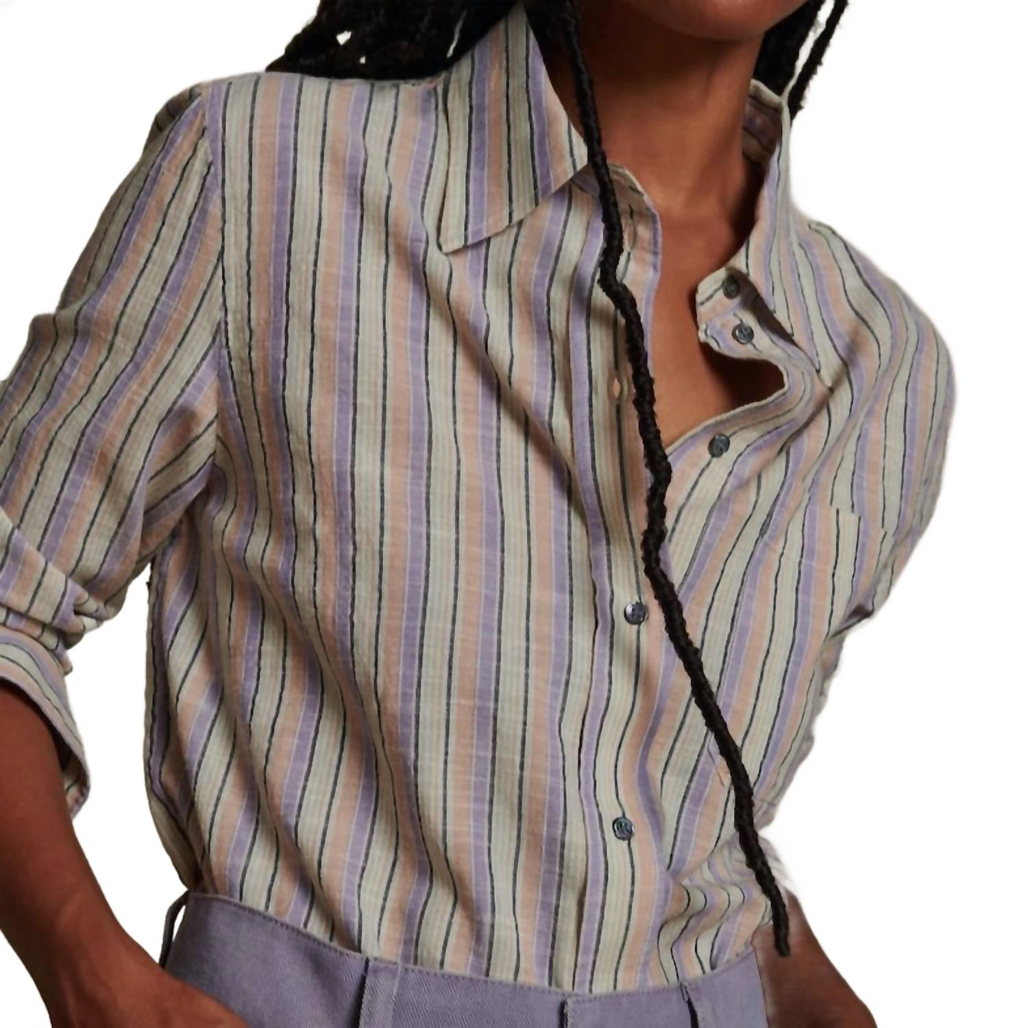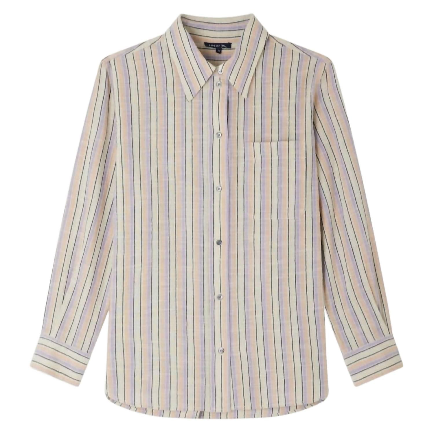 Классическая рубашка на пуговицах, которая никогда не выйдет из моды. Блузка Alphee от Soeur станет стильным дополнением к любому гардеробу благодаря длинным рукавам, манжетам на пуговицах и застежке на пуговицы спереди для удобства ношения. Изготовленная из 100% хлопка, эта блузка прямого кроя с отложным воротником и удобным накладным карманом на груди. Классический узор в полоску пармезан/бежевый добавляет нотку элегантности и идеально подходит как для повседневной носки, так и для работы. Рекомендации по уходу включают ручную стирку, что гарантирует сохранение деликатной ткани в идеальном состоянии.