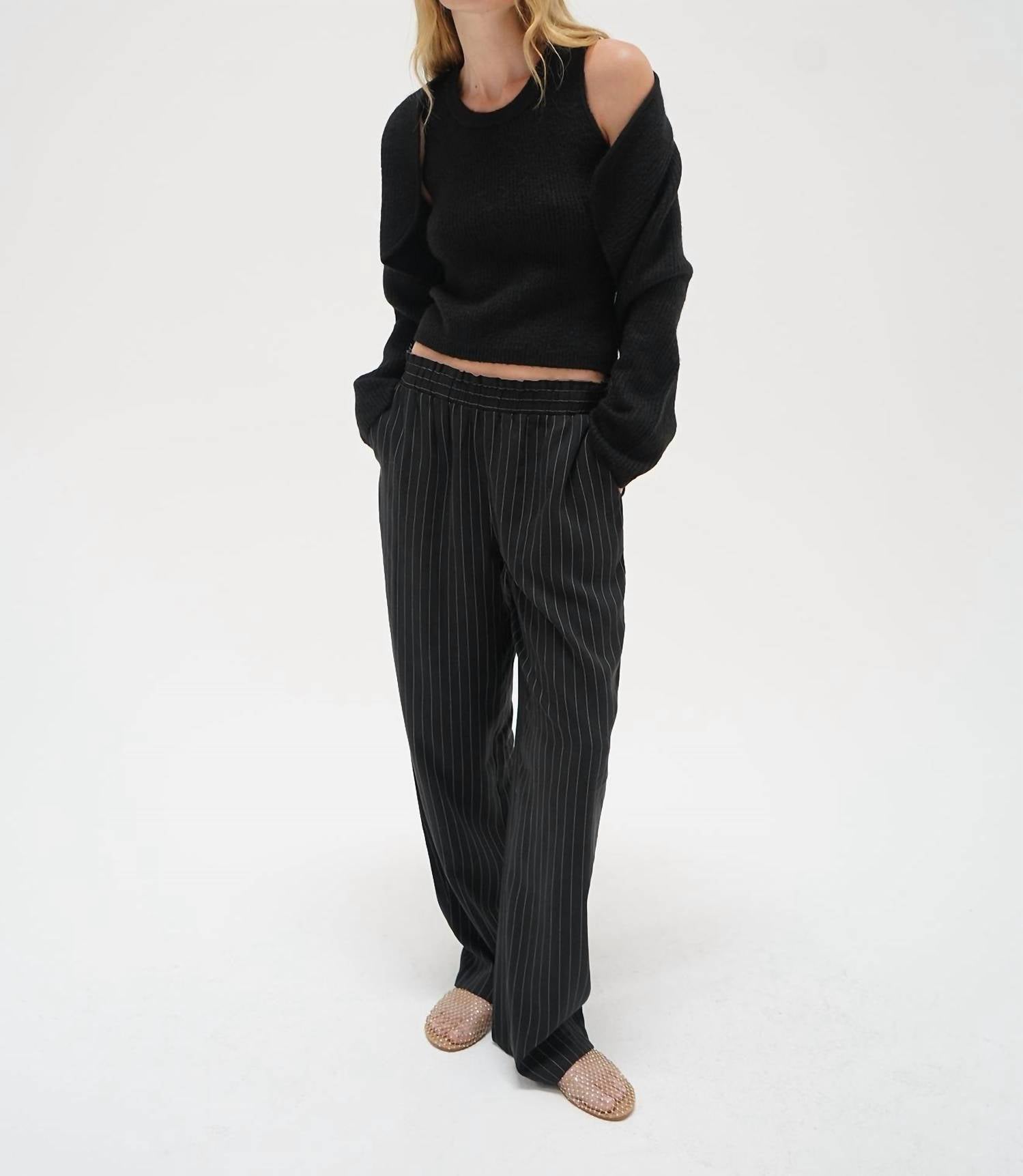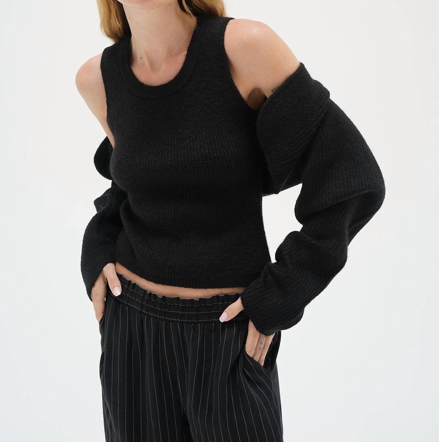 Этот кардиган станет вашим любимым свитером. Дополните свой гардероб комплектом свитеров Ean Shrug от LNA - стильным комплектом из двух предметов в классическом черном цвете. Этот комплект состоит из приталенной майки без рукавов и мини-шрага с длинными рукавами, что делает его универсальным. Изготовленный из мягкой смеси 52% акрила, 33% полиэстера, 13% нейлона и 2% спандекса, он обеспечивает комфорт и эластичность. Застежка удобная, надевается на застежку. Уход: ручная стирка в холодной воде и сушка на горизонтальной поверхности. Рост модели 178 см, размер S. Сшито в Лос-Анджелесе из импортной ткани.