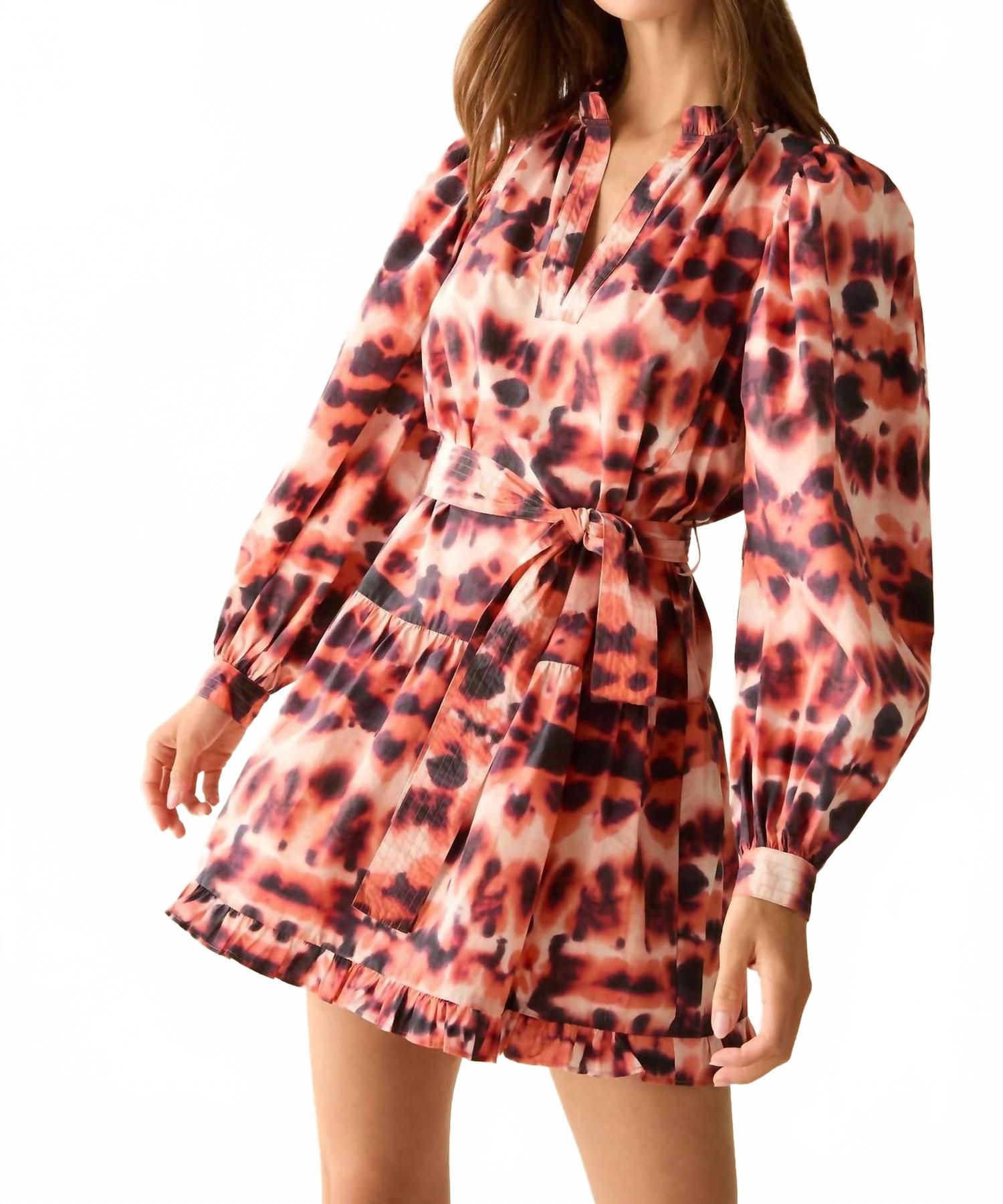 Мини-платье Marie Oliver Nella в цвете Napa Dye станет эффектным дополнением к любому гардеробу благодаря эффектным длинным рукавам и приталенным манжетам. Это мини-платье А-силуэта, выполненное из 100% хлопка, отличается изысканными складками на плечах, женственным V-образным вырезом и игривыми оборками по подолу и горловине. Эффектный узор тай-дай идеально подходит для максималистского стиля, что делает его отличным выбором для отпуска. Застежка: надевается вручную. Уход: машинная стирка и сушка на веревке.