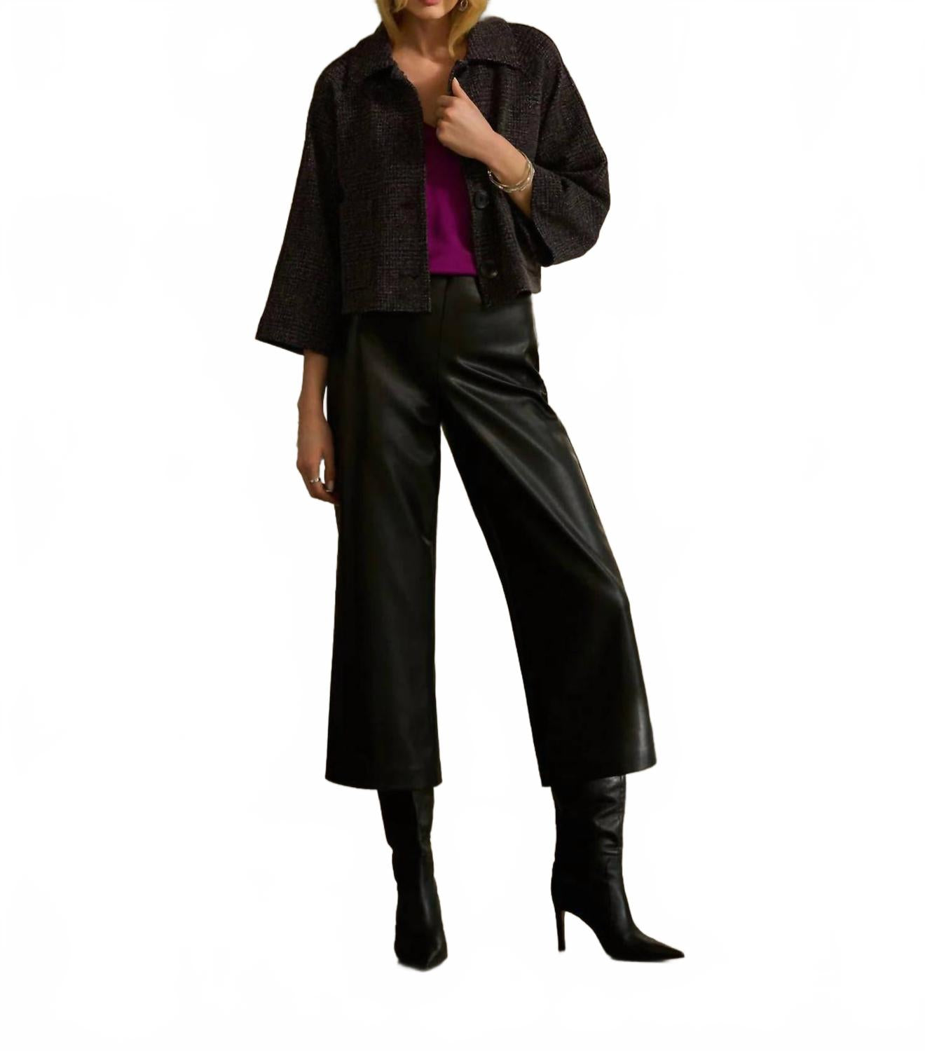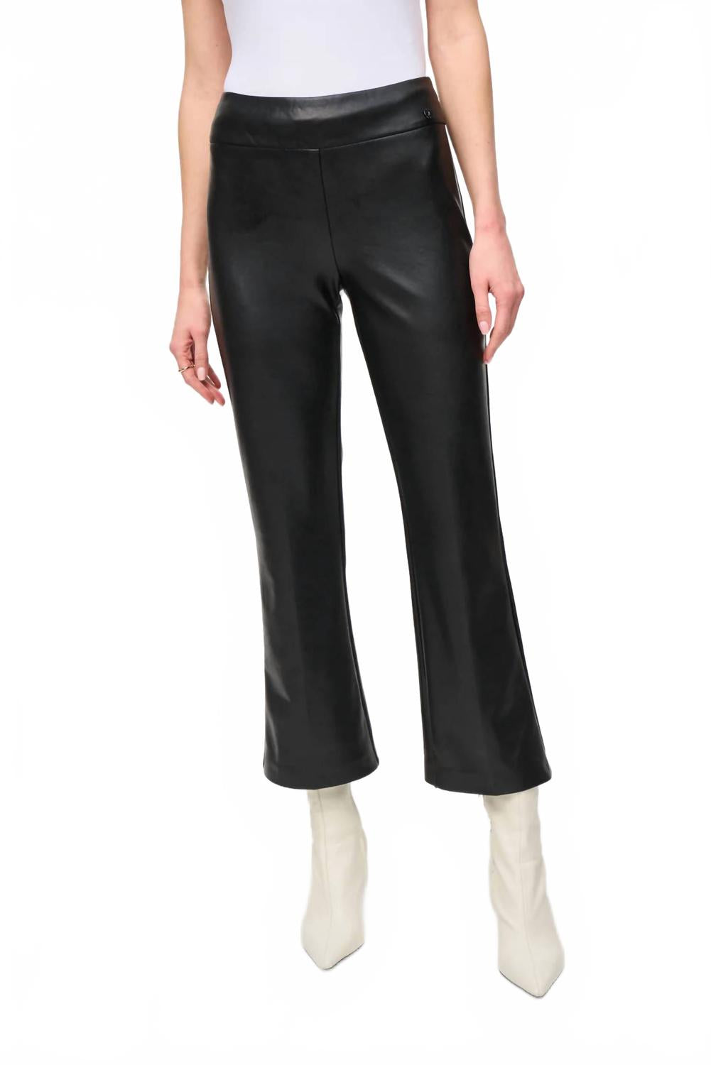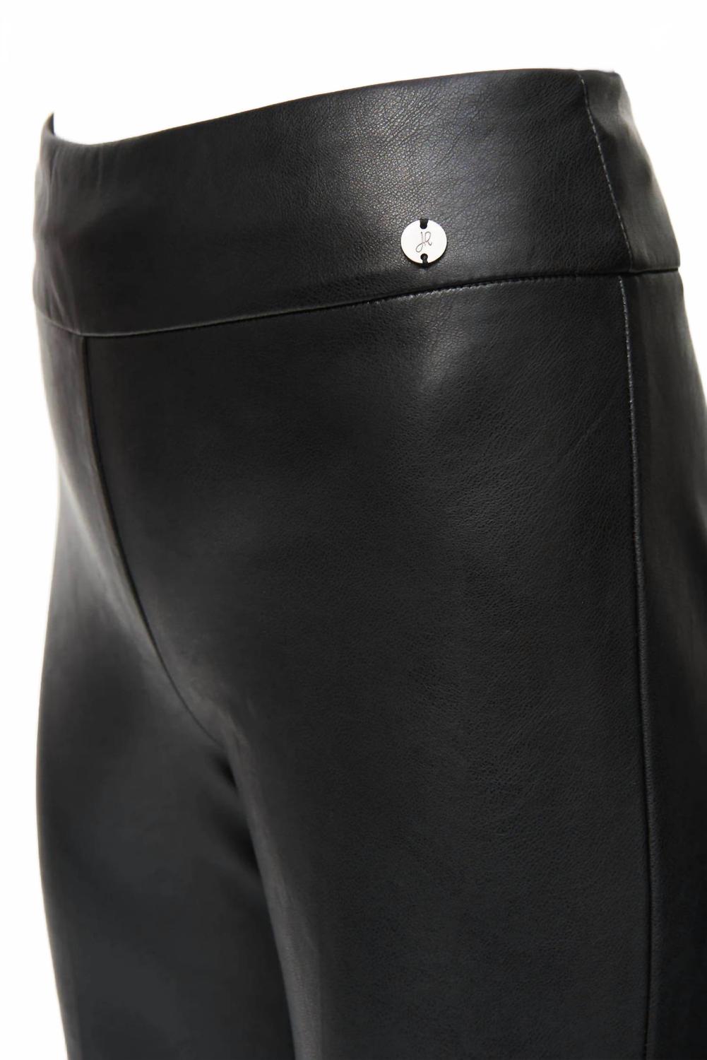 Слегка расклешенные брюки сейчас в тренде, и эти не исключение. Сочетайте их с любимой футболкой для более повседневного образа или с любимой блузкой на пуговицах для вечернего выхода. Представляем кожаные брюки Kick Flare Pant от Joseph Ribkoff - идеальное дополнение к вашему гардеробу для концерта или особого случая. Эти брюки однотонного черного цвета с высокой талией и стильным расклешенным кроем создают привлекательный силуэт. Изготовленные из полиэстера, они имеют классический крой и удобную застежку. Сделано в Канаде. Уход: ручная стирка, сушка в разложенном виде на горизонтальной поверхности.
