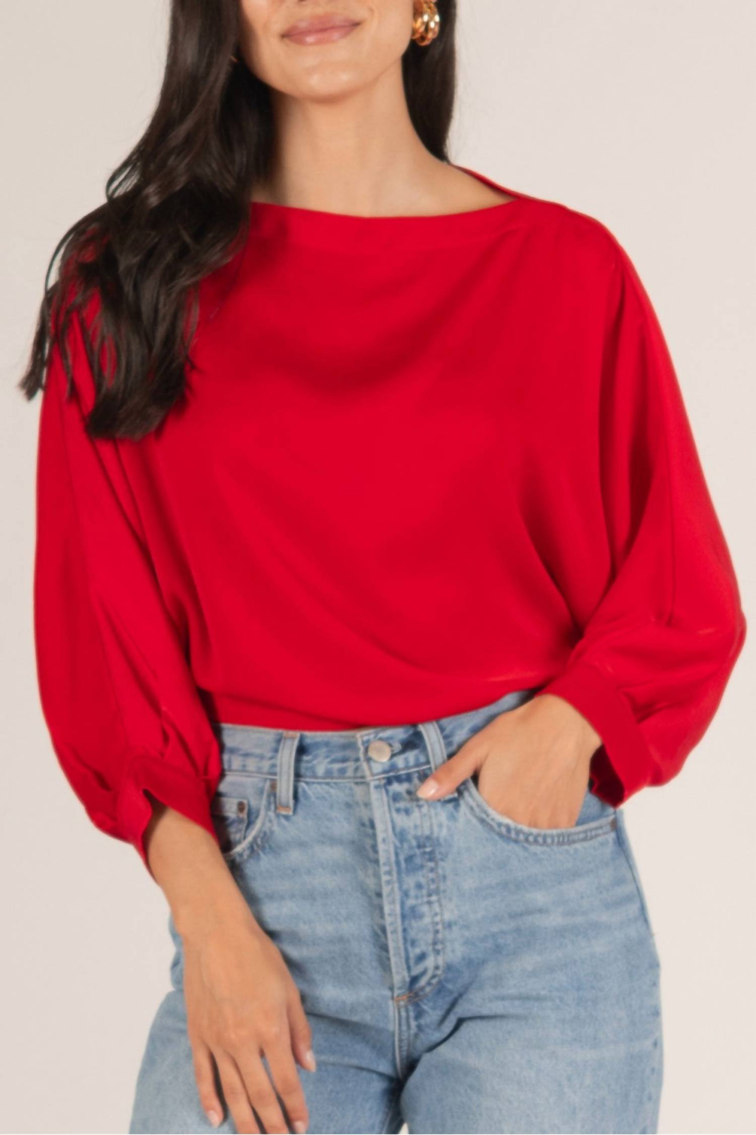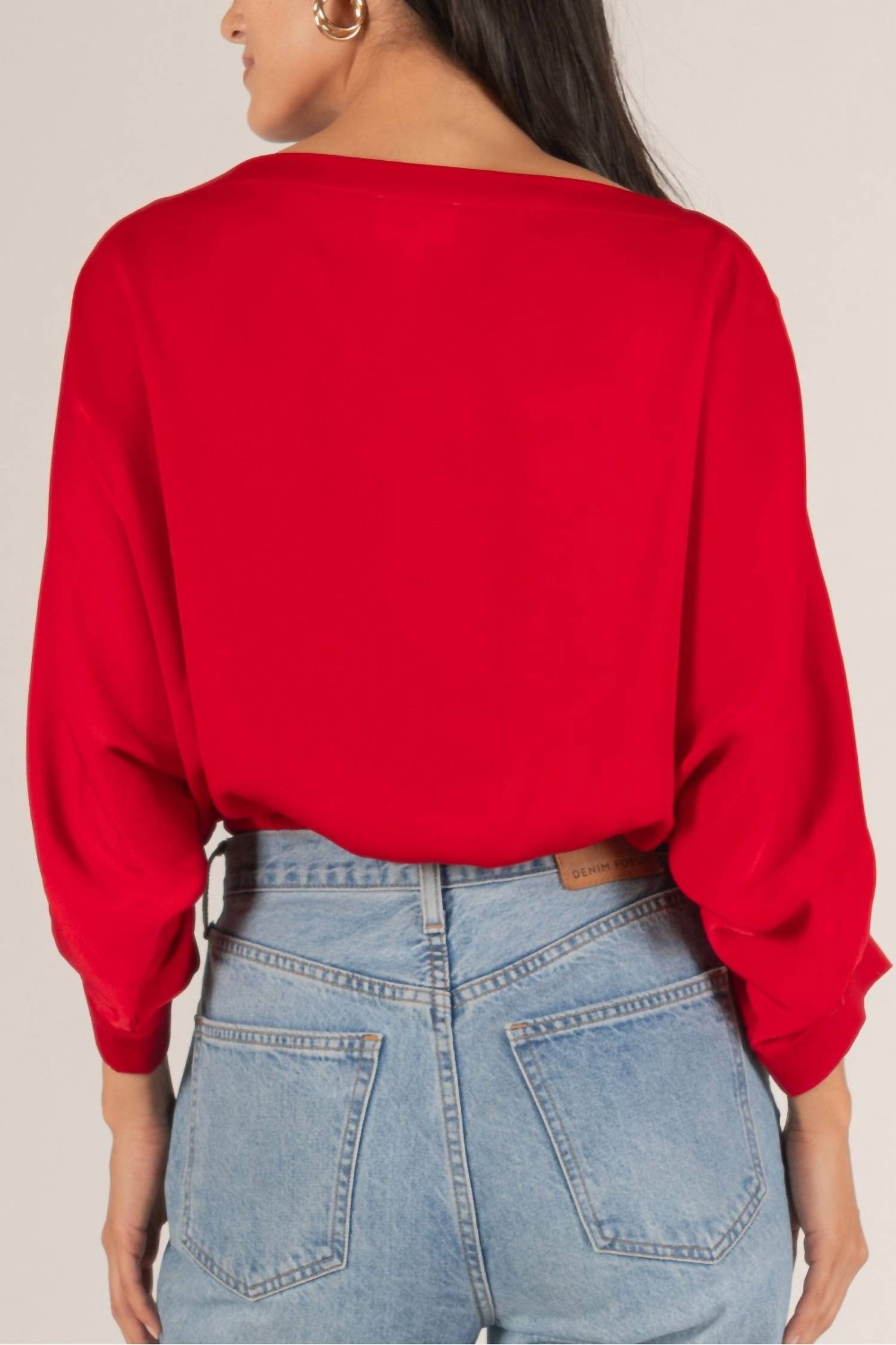Красная блузка с лодочкой из сатина Before You