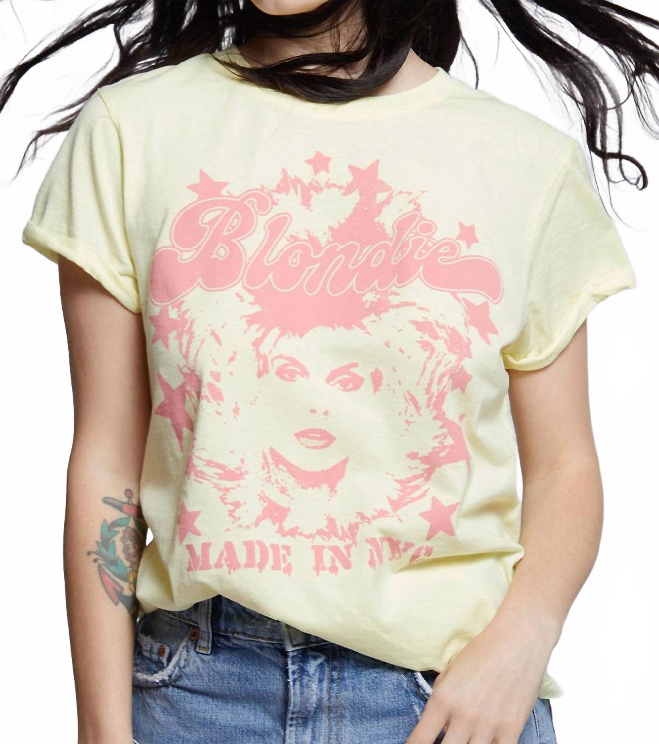 Не ищите дальше - вы нашли свою идеальную футболку! Раскройте в себе рок-звезду с топом Blondie Made In NYC от Recycled Karma. Эта футболка с короткими рукавами, изготовленная из 100% хлопка, украшена яркой розовой графикой Дебби Харри и надписью «Made in NYC». Эта приталенная футболка с круглым вырезом в рубчик, закатанными рукавами и модным закругленным подолом обеспечит вам эффектный образ. Рекомендации по уходу: машинная стирка в холодной воде и сушка в стиральной машине при низкой температуре для легкого ухода. Застежка: надевается. Идеально подходит для стильного летнего музыкального фестиваля.
