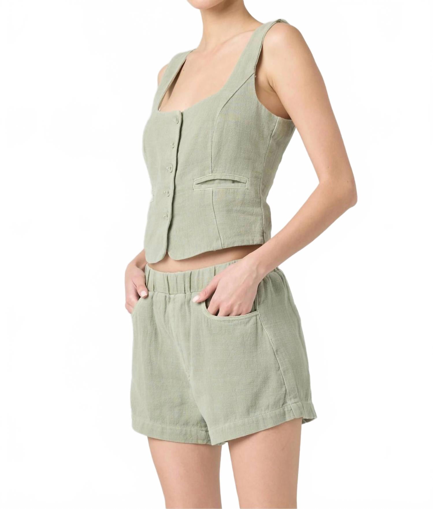 Жилет настолько универсален, что его можно сочетать практически с любым нарядом, и каждый раз он будет выглядеть по-новому. Подчеркните свой отпускной стиль с помощью женского жилета Desert Sage Vest от BLANKNYC - минималистичной модели, идеально подходящей для лета. Этот жилет без рукавов однотонного шалфейного оттенка имеет элегантный квадратный вырез, практичную застежку на пуговицы и удобные карманы для дополнительной функциональности. Универсальный и вневременной образ, он легко сочетается с любым нарядом. Добавьте этот изысканный жилет в свой гардероб, чтобы создать элегантный и стильный образ.