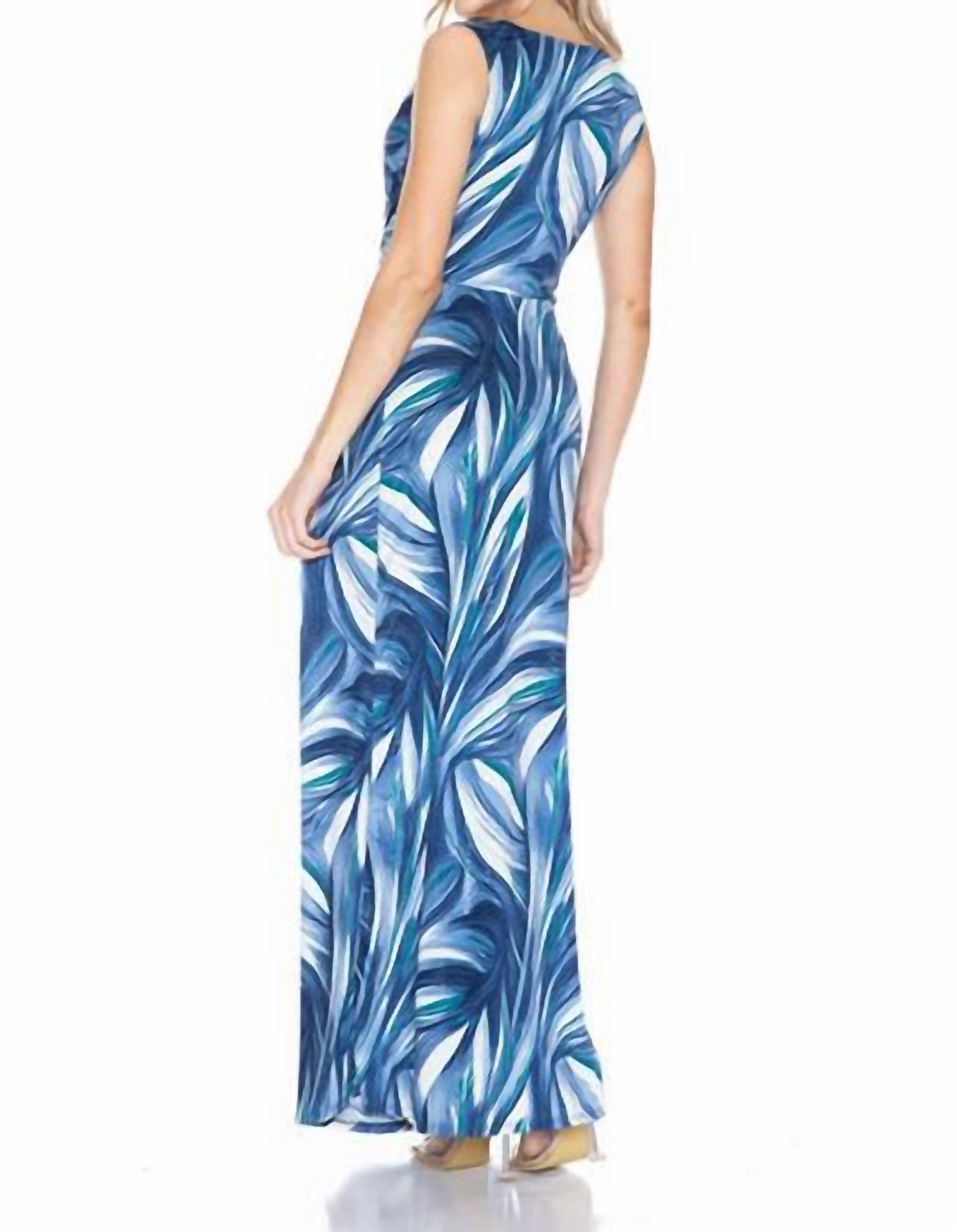 Синий макси-платье с драпировкой спереди Ariella
