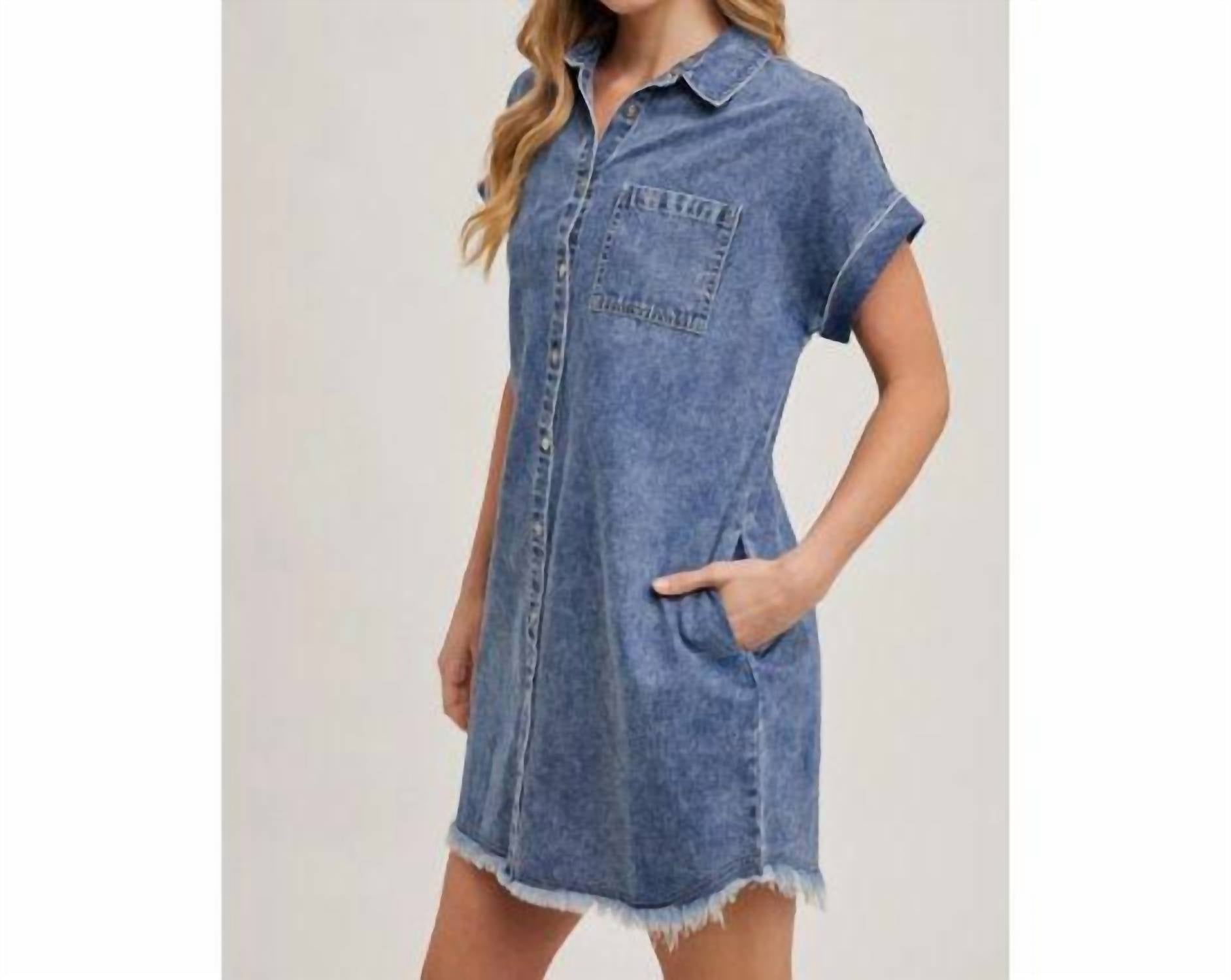 Идеальное мини-платье для теплых месяцев. Представляем джинсовое платье-рубашку с бахромой на подоле от BluIvy - идеальное сочетание повседневного комфорта и смелого стиля. Это женское мини-платье синего цвета с короткими рукавами изготовлено из прочной хлопковой ткани (85% хлопка и 15% полиэстера). Платье застегивается на классические пуговицы, имеет воротник-стойку, нагрудный карман и удобные боковые карманы, что, в сочетании с модным бахромой на подоле, обеспечивает практичность. Идеально подходит для весенних путешествий. Рекомендуется стирать вручную, чтобы сохранить очарование в стиле вестерн.