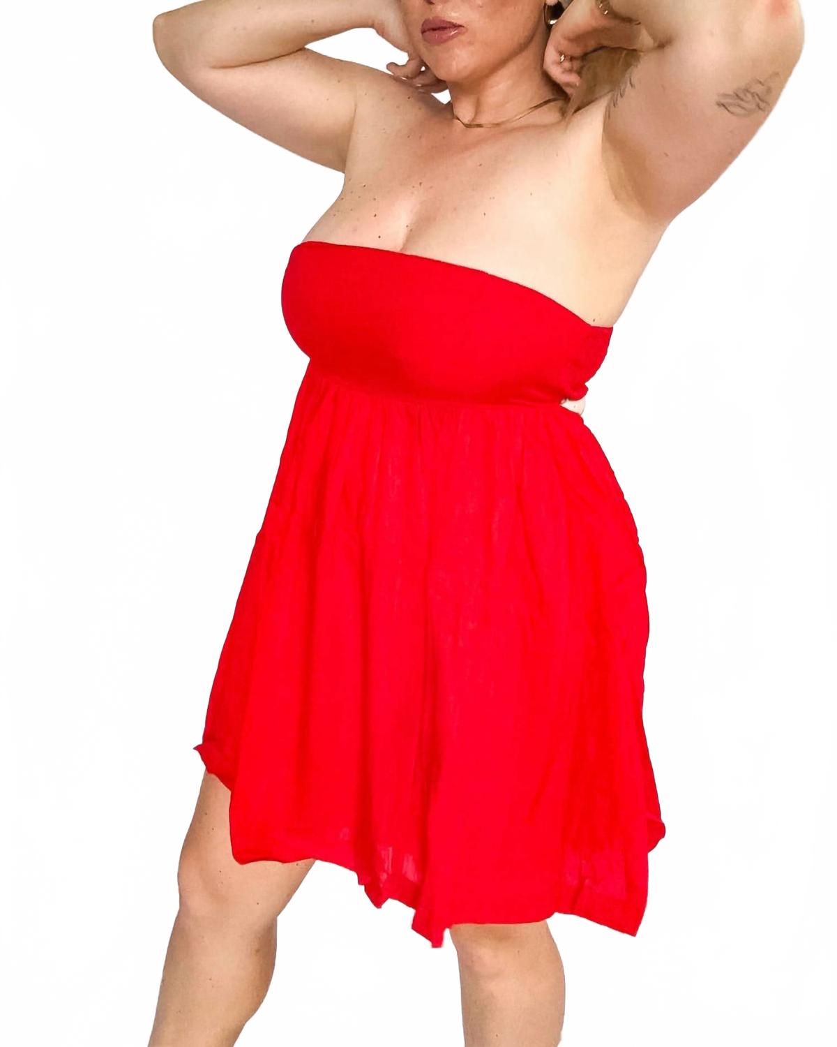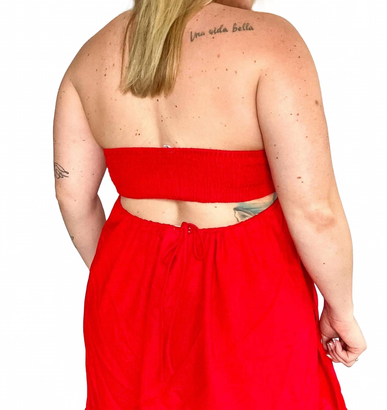 Короткое и воздушное платье для теплых дней. Представляем женское платье-трубу Dune Dancer Babydoll от LE LIS - яркий образ в стиле бохо-шик в ярко-красном цвете, идеально подходящий для отпуска. Это платье без бретелек отличается облегающим силуэтом и струящимся лифом «бэбидолл», идеально подходящим для кружений на пляже. Платье изготовлено из 70% вискозы и 30% льна. Присборенная сзади бретелька и регулируемый пояс на талии обеспечивают комфорт при надевании. Платье с квадратным вырезом и клеевой подкладкой обеспечивает поддержку, а внутренняя подкладка обеспечивает легкость и воздухопроницаемость.