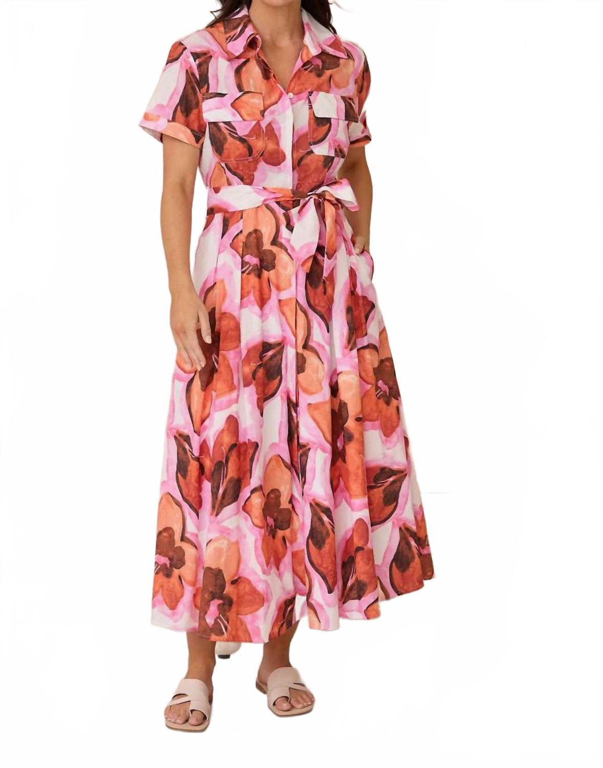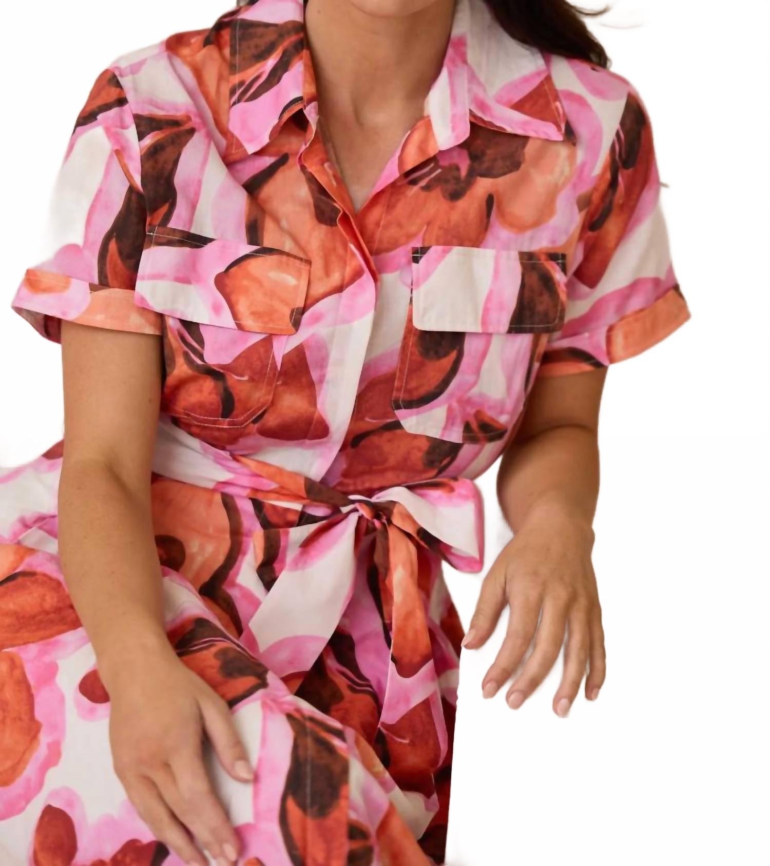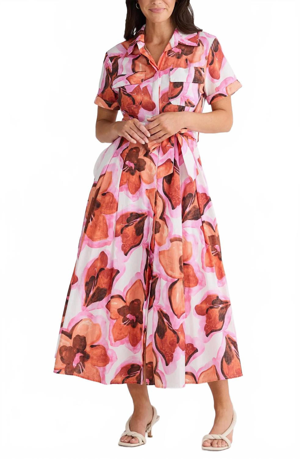 Платье макси, столь же милое, сколь и удобное. Представляем платье Rossellini Short Sleeve Dress от Brave + True - платье в стиле преппи с цветочным принтом яркого красного цвета. Это платье-рубашка из 100% хлопка имеет изящный А-образный силуэт и длину 148 см. Отложной воротник, короткие рукава и накладные карманы с клапанами на груди сочетают в себе стиль и функциональность. Платье дополнено съемным поясом и потайной планкой с пуговицами для легкой застежки. Уход прост: машинная стирка и сушка на веревке. Это платье, изготовленное с вниманием к деталям, станет незаменимой вещью в вашем гардеробе.