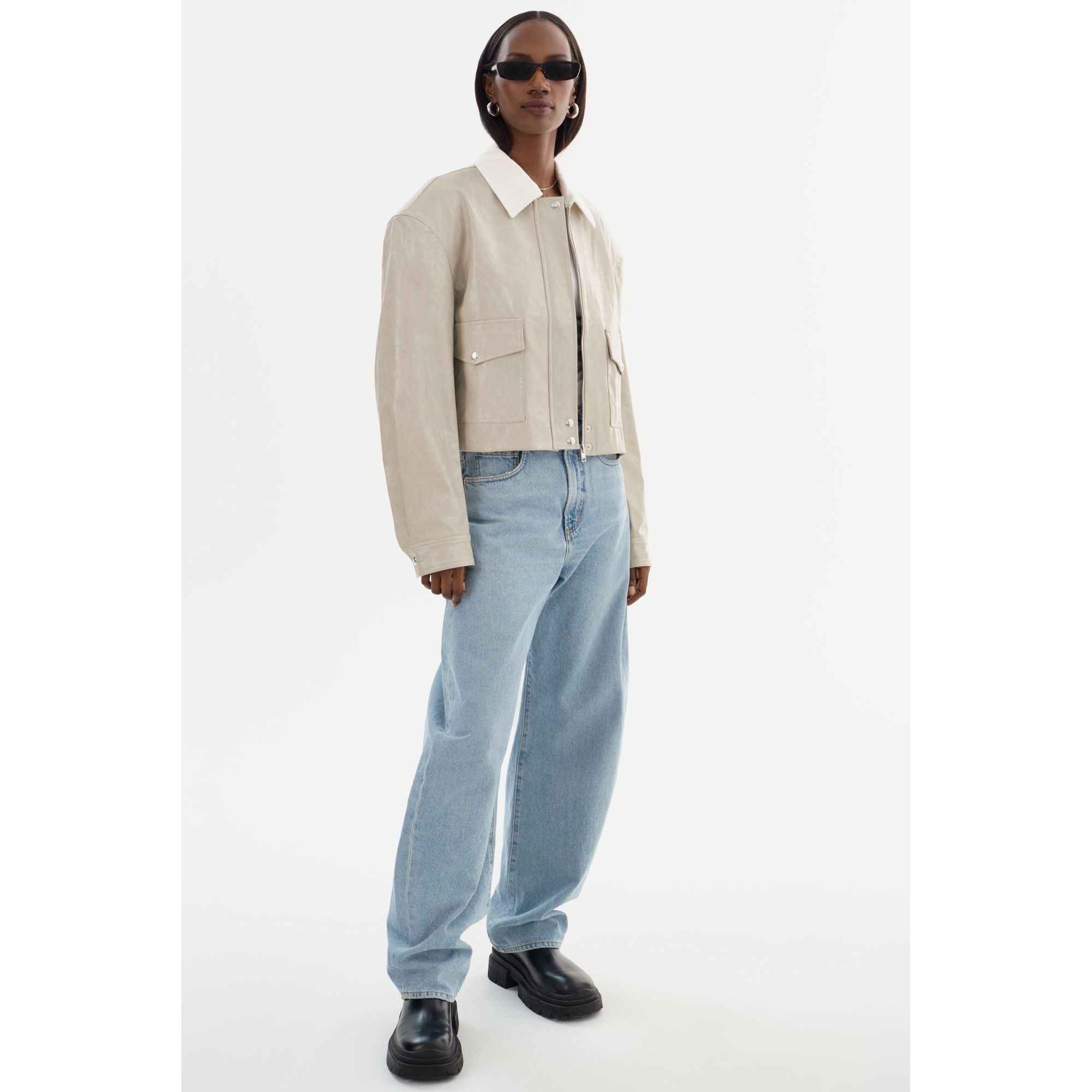 Шикарная, но, несомненно, смелая, куртка из искусственной кожи BRAYLIN сочетает в себе современный дизайн и линии в стиле ретро. Глянцевая потрескавшаяся искусственная лакированная кожа и мягкий вельветовый воротник создают неожиданный текстурный контраст, который выглядит одновременно роскошно и изысканно. Свободный крой и спущенные плечи придают новый штрих классическому силуэту куртки, а эластичный подол добавляет форму и изысканность. Сочетайте эту универсальную вещь с прямыми джинсами или юбкой-карандаш, чтобы создать элегантный образ, который легко перейдет как с дневного, так и с вечернего.