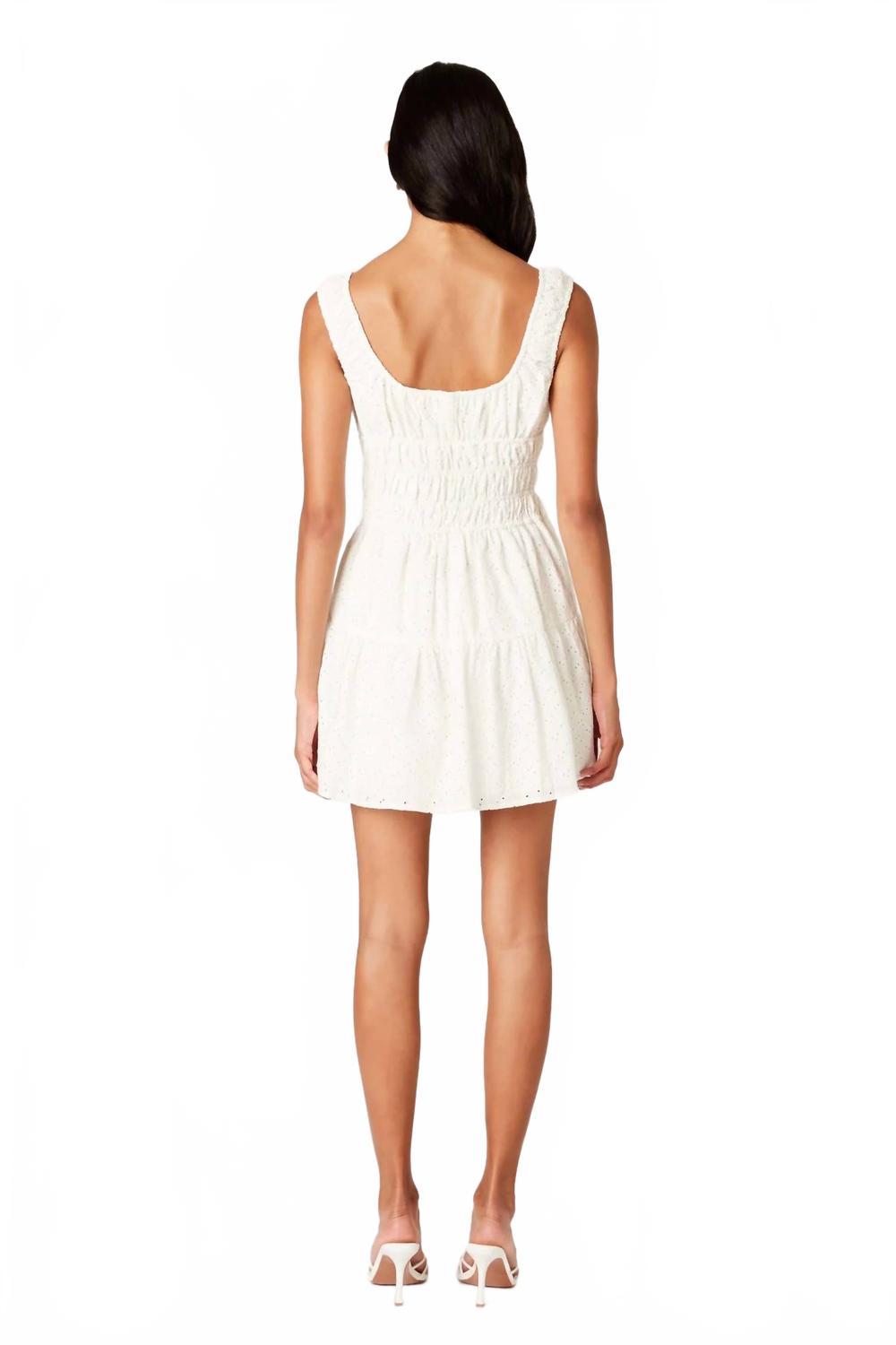 Представляем мини-платье Salt от NIA - идеальное сочетание ностальгического очарования и современной элегантности в классическом черном цвете. Это женское летнее платье без рукавов из текстурированного 100% хлопка идеально подходит для вечерних мероприятий. Платье отличается соблазнительным круглым вырезом, лифом с рюшами и завязкой спереди, застежкой-липучкой и практичными карманами. Насладитесь игривым, многоуровневым, оборчатым А-силуэтом, который легко двигается, воплощая тренд на сдержанную роскошь.