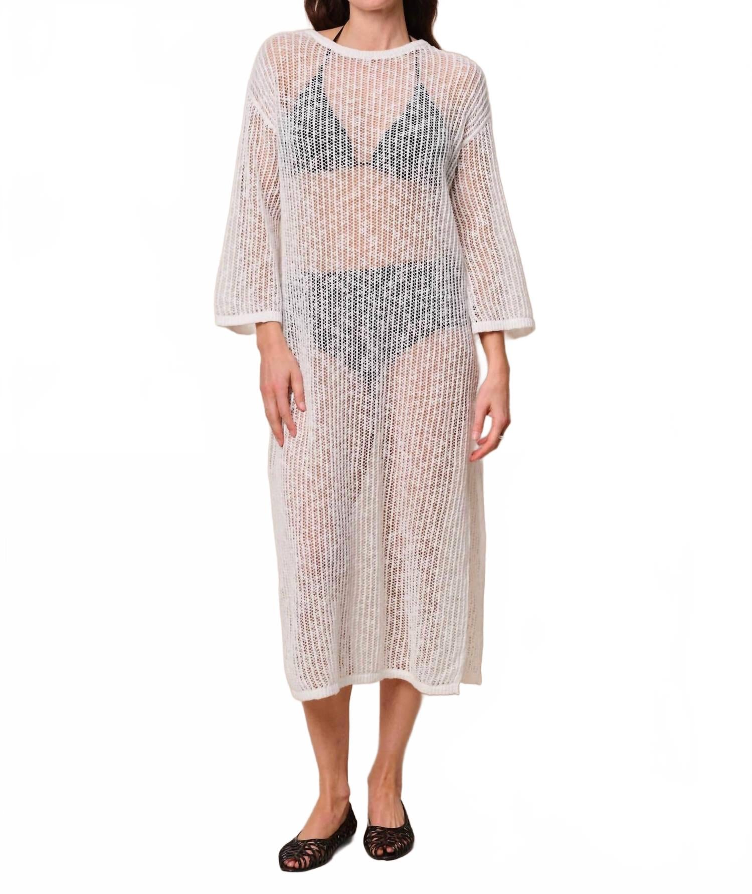 Вам непременно захочется взять это платье-свитер с открытыми двойными разрезами от STATESIDE, которое переосмысливает непринужденную элегантность благодаря кремовому цвету и сетчатому крою. Эта женская модель с двойными разрезами по бокам обеспечивает свободу движений и воздухопроницаемость, идеально подходящую для летних пляжных дней. Текстурированный узор добавляет нотку минималистичного тренда, поддерживая как элегантную накидку, так и легкое платье-свитер. С этим универсальным и современным платьем вы сможете легко создать стильный образ как на берегу моря, так и на непринужденной прогулке.