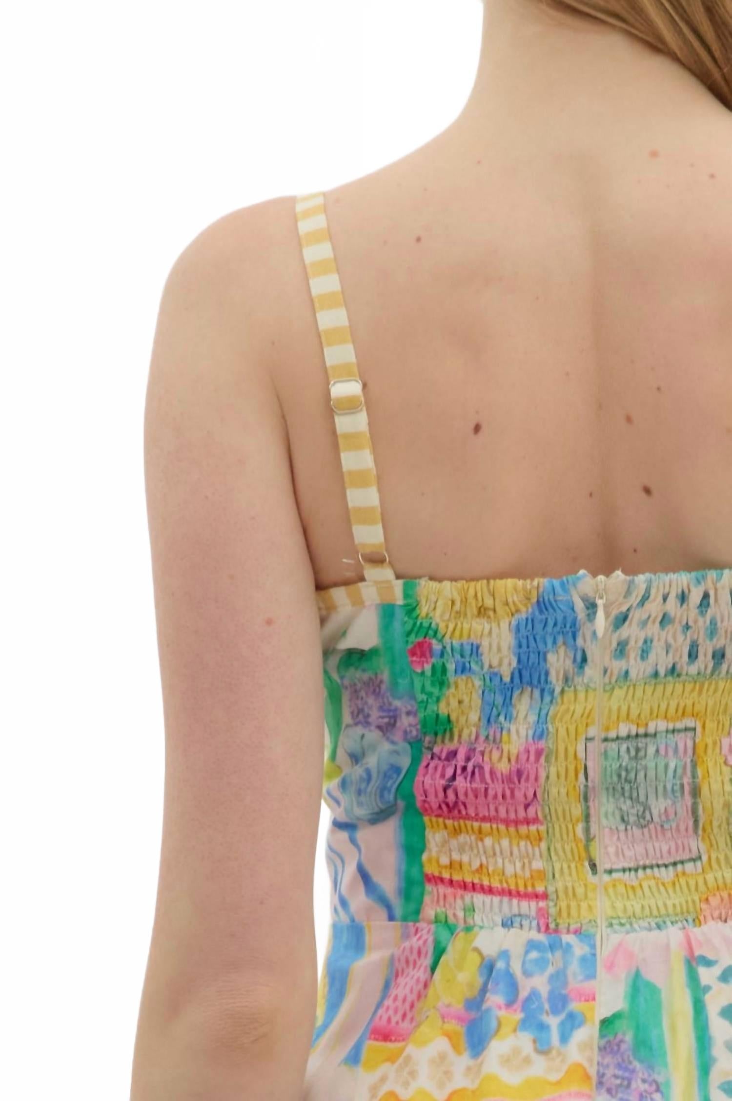 Удобное и милое, это повседневное платье сочетает в себе все необходимое. Дополните свой летний гардероб мини-платьем Entro Resort, которое станет стильным дополнением как для праздничных вечеринок, так и для повседневных прогулок. Платье А-силуэта с тонкими бретельками и присборенной спинкой обеспечивает комфортную посадку, а яркий курортный принт и контрастный полосатый узор дополняют его. Платье изготовлено из трикотажа, имеет функциональные боковые карманы и застежку-молнию. Уход за платьем прост: рекомендуется машинная стирка, что делает его практичным и стильным выбором для теплой погоды.