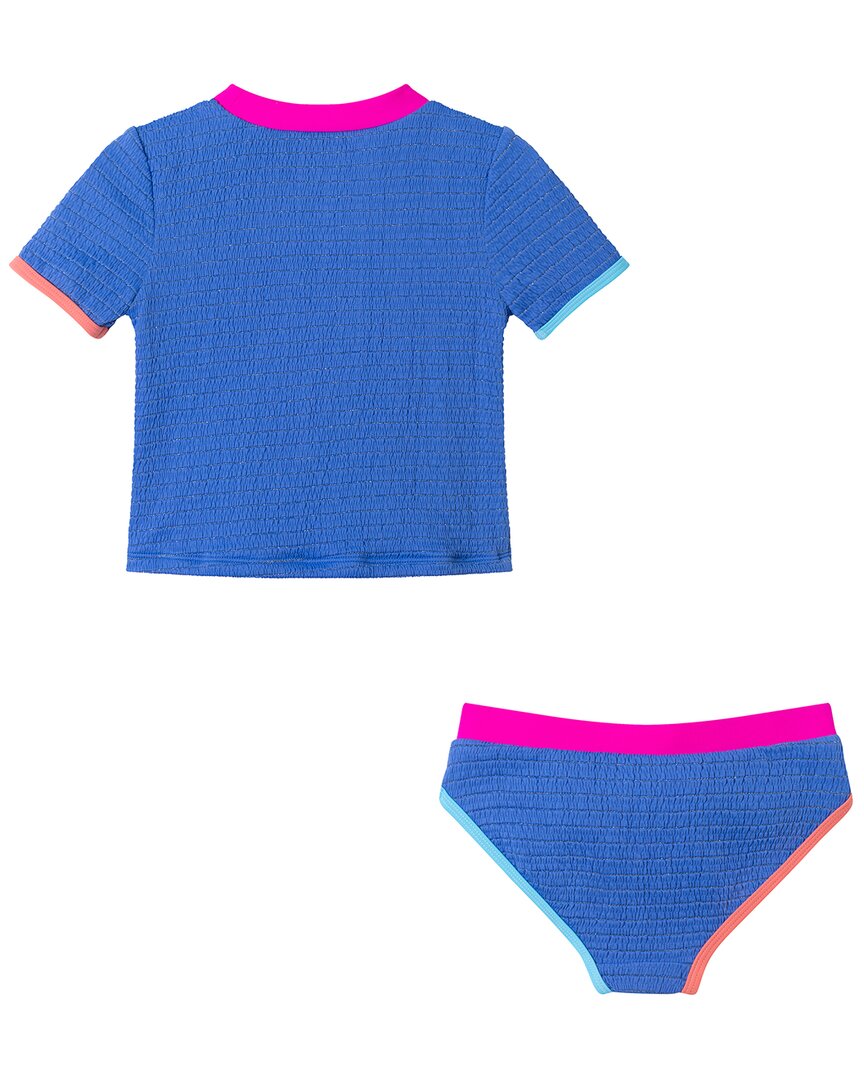Представляем комплект с рашгардом Andy & Evan - незаменимую вещь в коллекции купальников для вашей малышки. Этот очаровательный комплект с ярким разноцветным рисунком и фактурными деталями сделает ее заметной у бассейна или на пляже. Благодаря свободному крою, купальник легко надевать и снимать, а материал верха изготовлен из 92% нейлона, 3% люрекса и 5% спандекса для комфортной посадки. Контрастные детали выполнены из 100% полиэстера. Этот комплект можно стирать в стиральной машине, он импортного производства, что делает его удобным и стильным дополнением к летнему гардеробу вашей малышки.