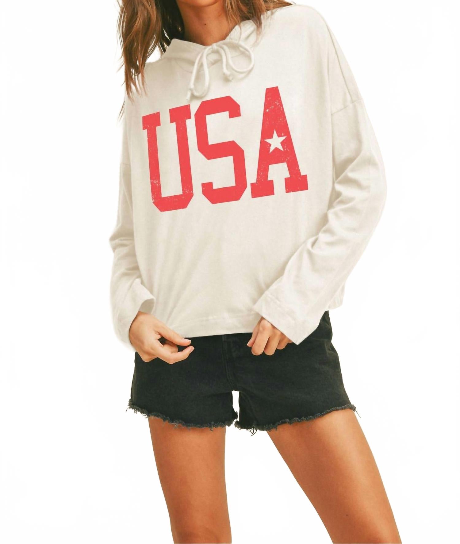 Капюшонный пуловер USA в мягком белом Protrend
