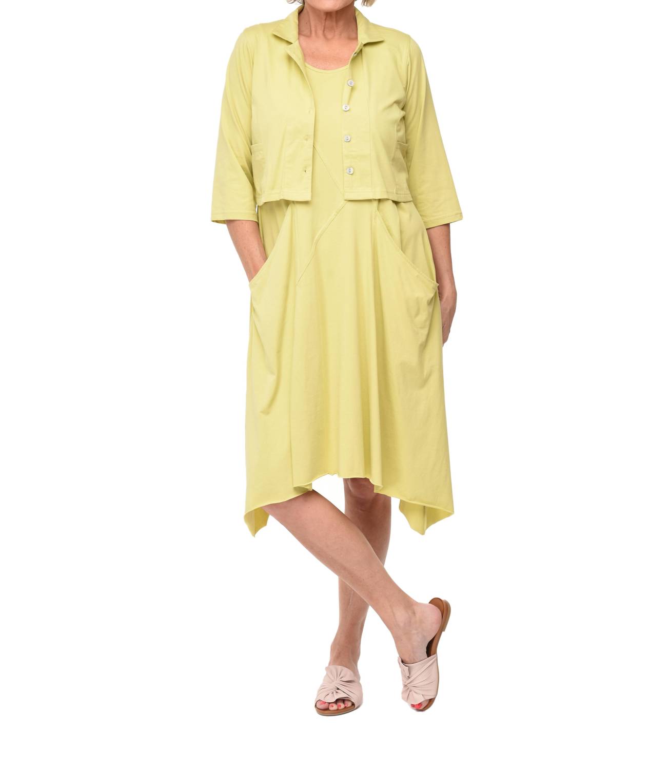 Встречайте платье Emmy от Tulip Clothing - эффектное платье без рукавов насыщенного лаймового цвета, которое украсит ваш наряд для званого ужина. Это платье длиной до колена, выполненное из хлопковой смеси (95% хлопок, 5% спандекс), украшено декоративным круглым вырезом, уникальными асимметричными швами. Удобные карманы с драпировкой спереди и бесшовные детали на спинке сочетают в себе стиль и функциональность. Платье удобно носить благодаря застежке-липучке. Можно стирать в стиральной машине, а для ухода за ним сушить в подвешенном состоянии.