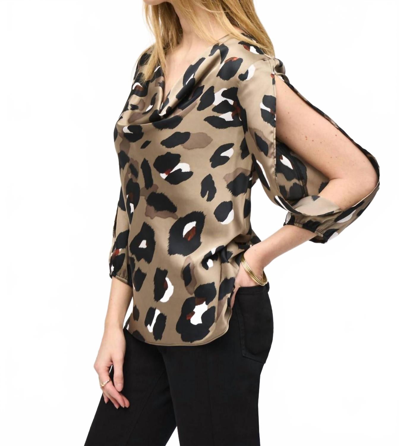 Леопардовый сатиновый топ в черно-разноцветном оттенке Joseph Ribkoff