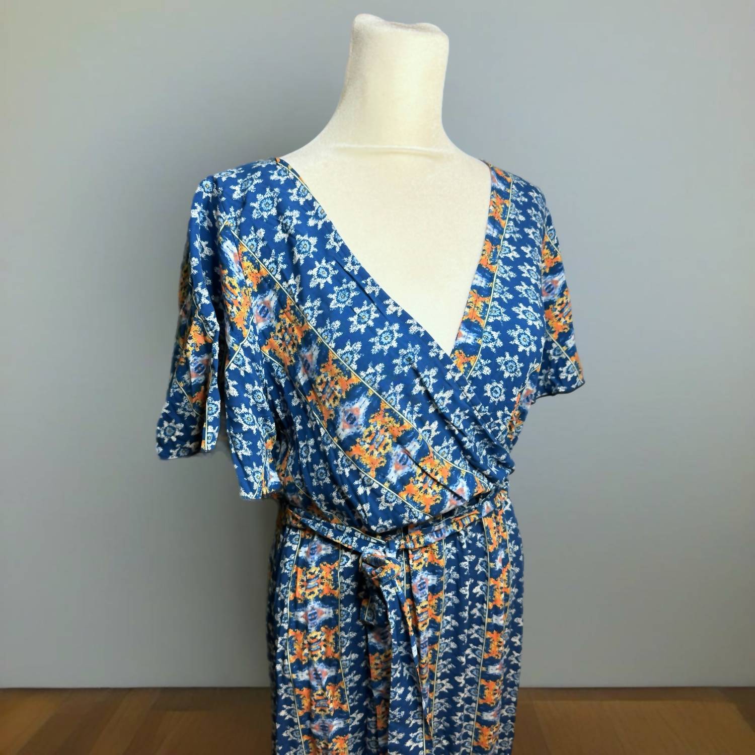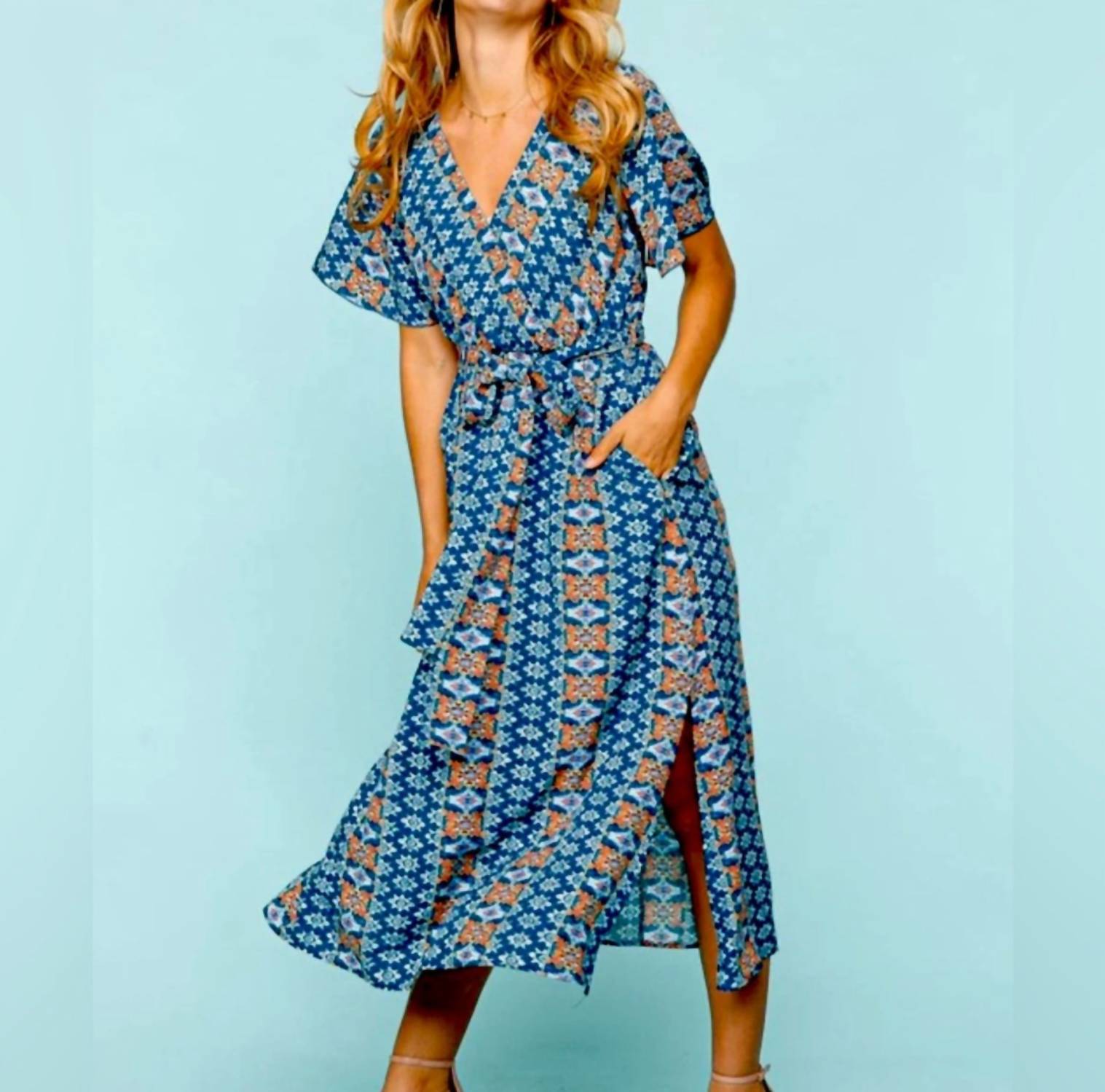 Бохо-платье миди с запахом в синем цвете Haptics