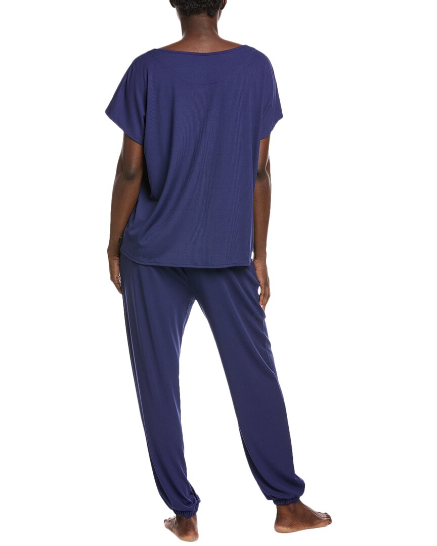 Побалуйте себя роскошной домашней одеждой с комплектом Badgley Mischka Yummy из двух предметов: рубашки и брюк. Этот комплект, выполненный из мягкой рубчатой ​​ткани потрясающего черничного оттенка, включает в себя уютную рубашку с круглым вырезом и брюки на кулиске для максимального комфорта. Благодаря свободному крою и свободному крою этот комплект идеально подходит для отдыха дома или стильного сна. Комплект изготовлен из 95% полиэстера и 5% спандекса, его легко стирать в стиральной машине. Дополните свою коллекцию домашней одежды этим элегантным и вневременным дизайном от Badgley Mischka.