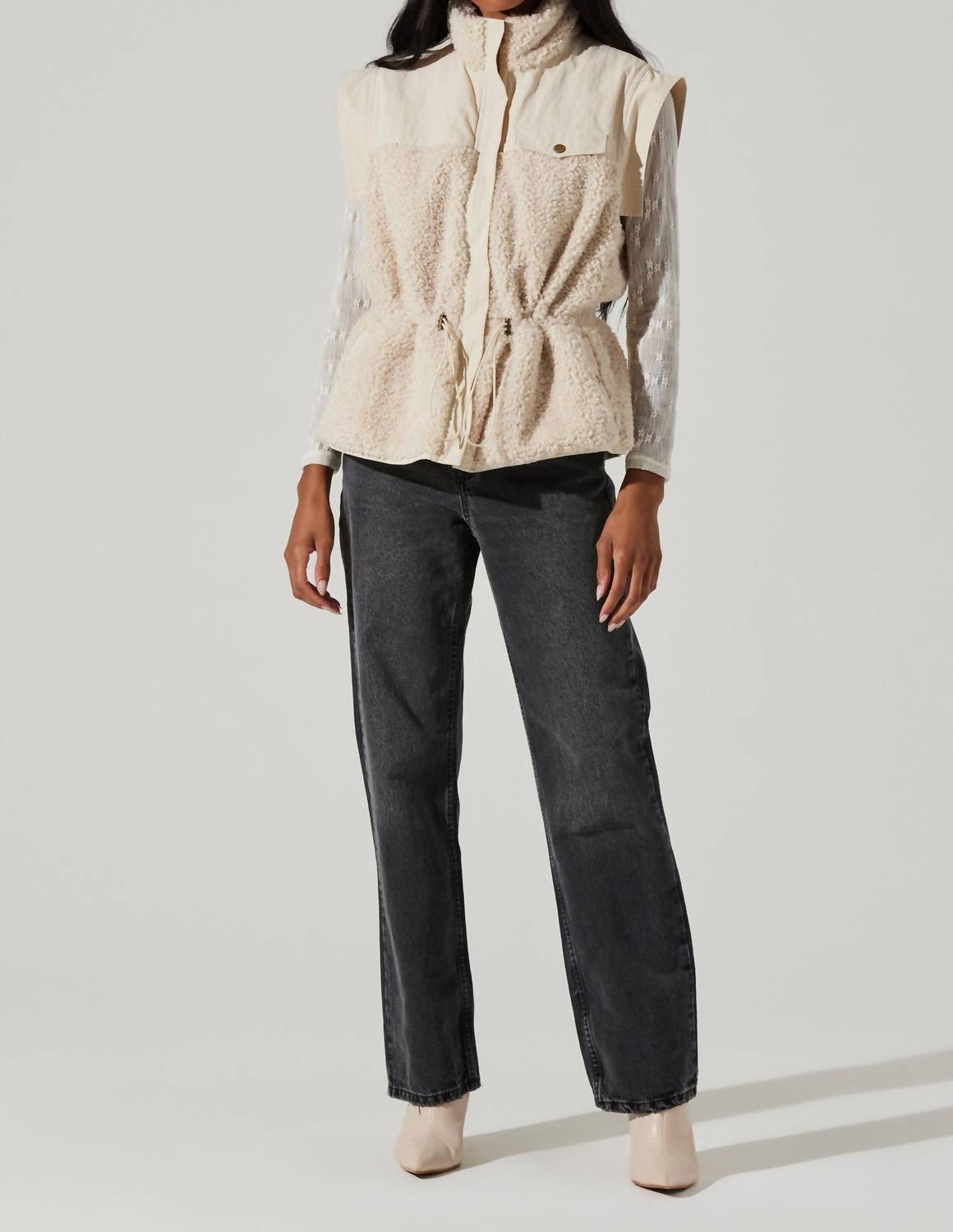 Этот жилет без рукавов кремового цвета с высоким воротником и регулируемыми эластичными завязками имеет длину 26 дюймов, что обеспечивает привлекательный силуэт. Он изготовлен из роскошного сочетания 100% полиэстера-букле и 100% нейлона контрастного цвета. Он оснащен функциональными боковыми карманами и декоративным карманом спереди. Застежка на молнию по центру спереди и кнопки на карманах. Для сохранения элегантной текстуры жилету необходима химчистка.
