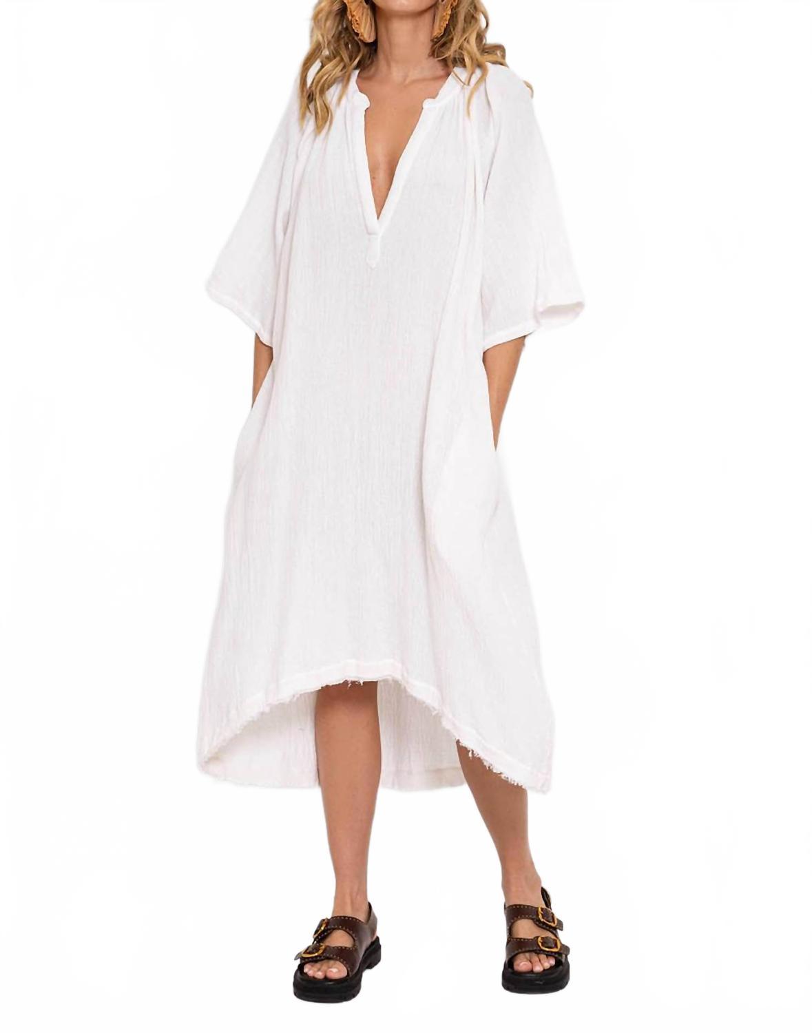Откройте для себя непринужденную элегантность в платье Mia Dress от Sundress в цвете Off White, идеально подходящем для создания элегантного весеннего образа. Это платье с асимметричным кроем, широкими рукавами до локтя и V-образным вырезом выполнено из 100% хлопка в средиземноморском стиле. Это однотонное платье легко надевается, дополнено удобными карманами и отдельным поясом для создания универсального образа. Платье изготовлено во Франции и допускает бережную ручную стирку, что гарантирует бережный уход за деликатной тканью. Один размер.