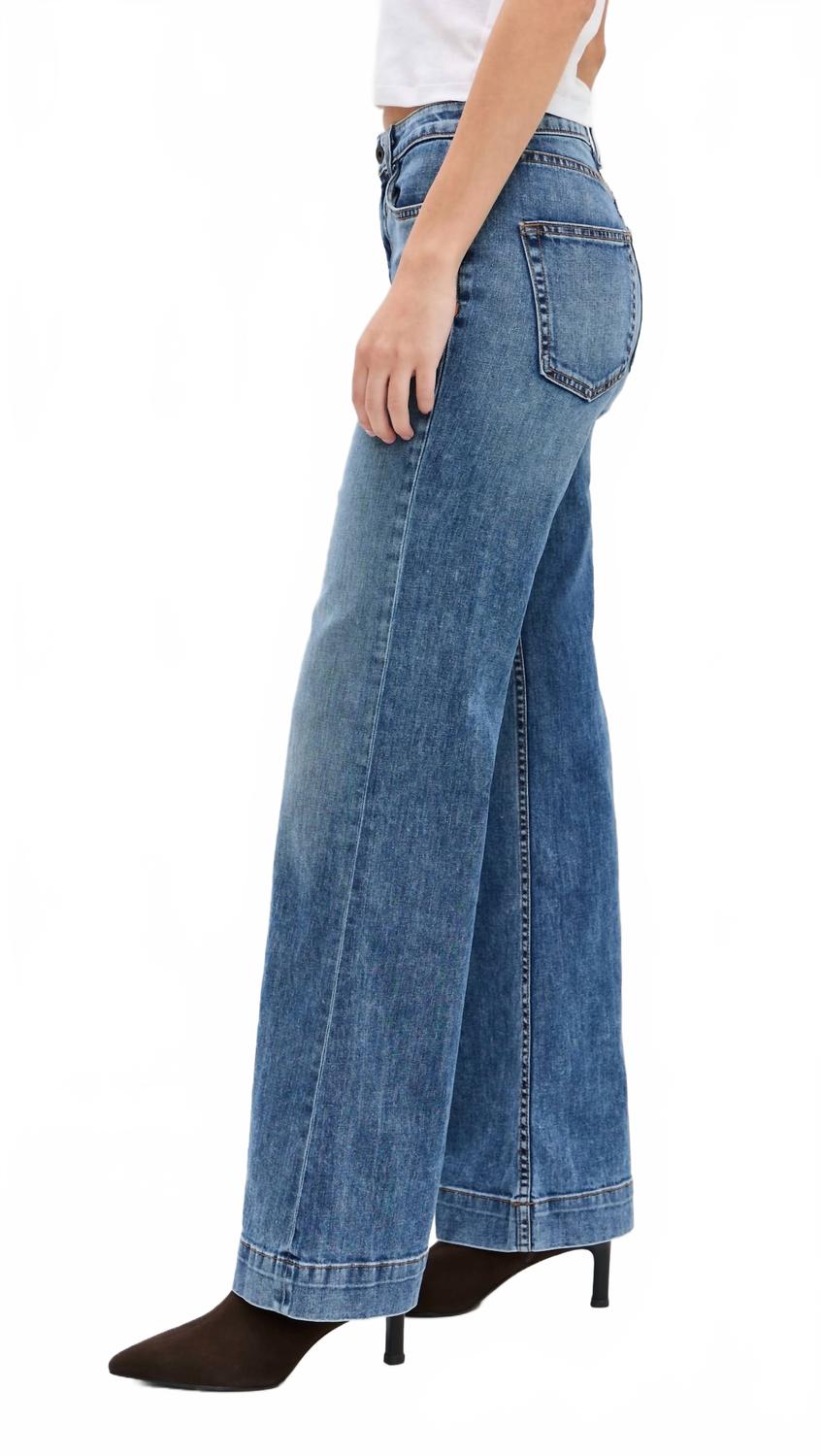 Подчеркивающий фигуру силуэт и удивительно универсальная модель. Выразите себя в джинсах Juniper Wide Leg от ASKK NY, сшитых из неэластичного денима средней плотности средней степени стирки, подчеркивающего фигуру. Эти джинсы с высокой посадкой, произведенные в США, застегиваются на пуговицы и молнию и имеют удобный крой с пятью карманами. Состав: 98% хлопка и 2% полиуретана, они созданы для комфорта и долговечности. Эти джинсы имеют точные размеры, начиная с 25-го размера: посадка 23 см, длина внутреннего шва 88 см и ширина брючины 52 см. Инструкция по уходу: машинная стирка в холодной воде.