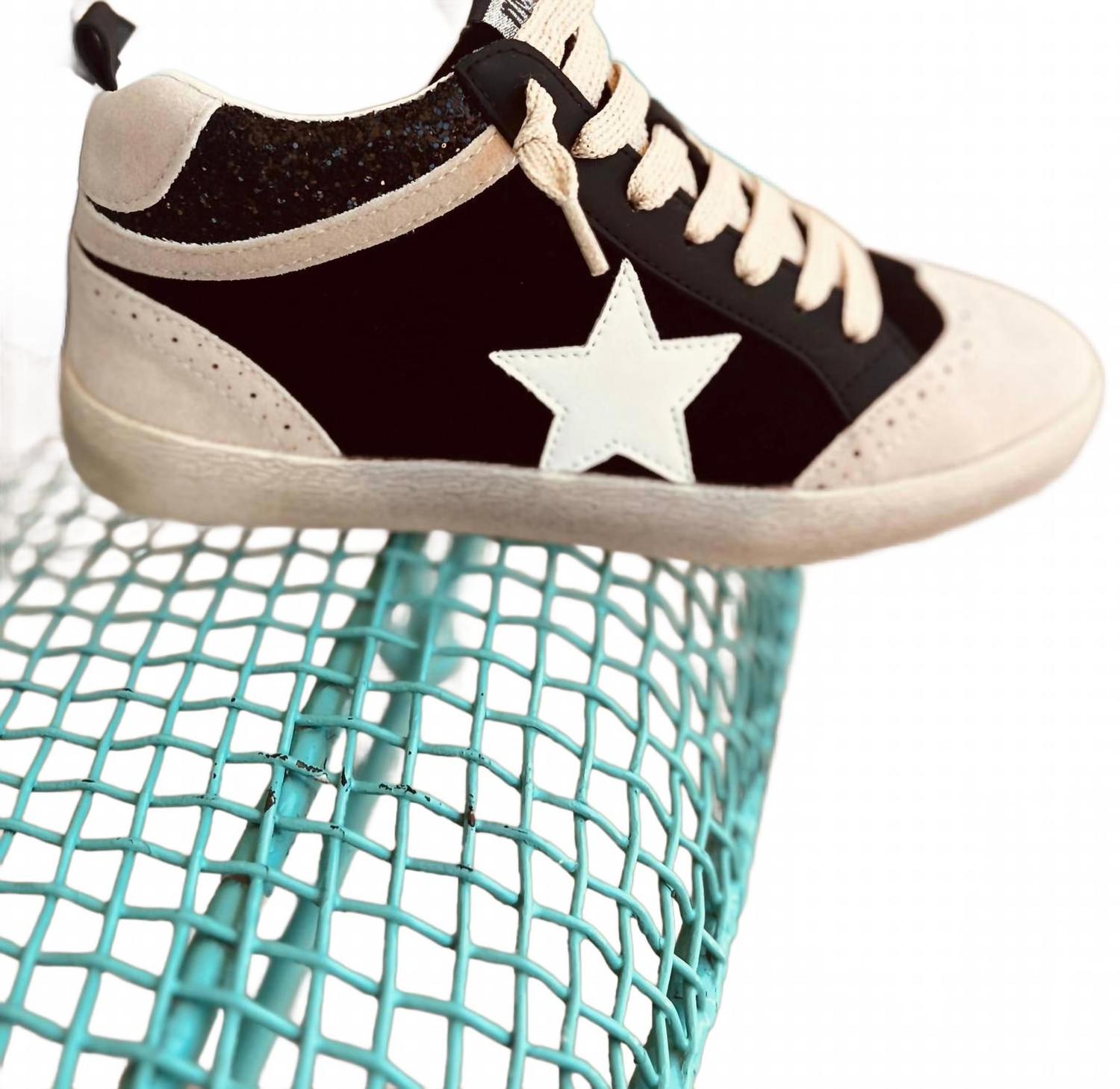 Когда мода и функциональность гармонично сочетаются. Выведите свой обувной стиль на новый уровень с женскими кроссовками Take It Back от MiiM, которые идеально подойдут для игривого образа. Эти высокие кроссовки в винтажном стиле выполнены в элегантной бежево-черной цветовой гамме и дополнены модным звездным элементом сбоку. Благодаря круглому носку и плоской пятке они сочетают в себе стиль и комфорт, идеально подходя для летних путешествий. Эти кроссовки идеально подходят по размеру и созданы специально для женщин, чтобы гармонично вписаться в ваш праздничный гардероб на День независимости.