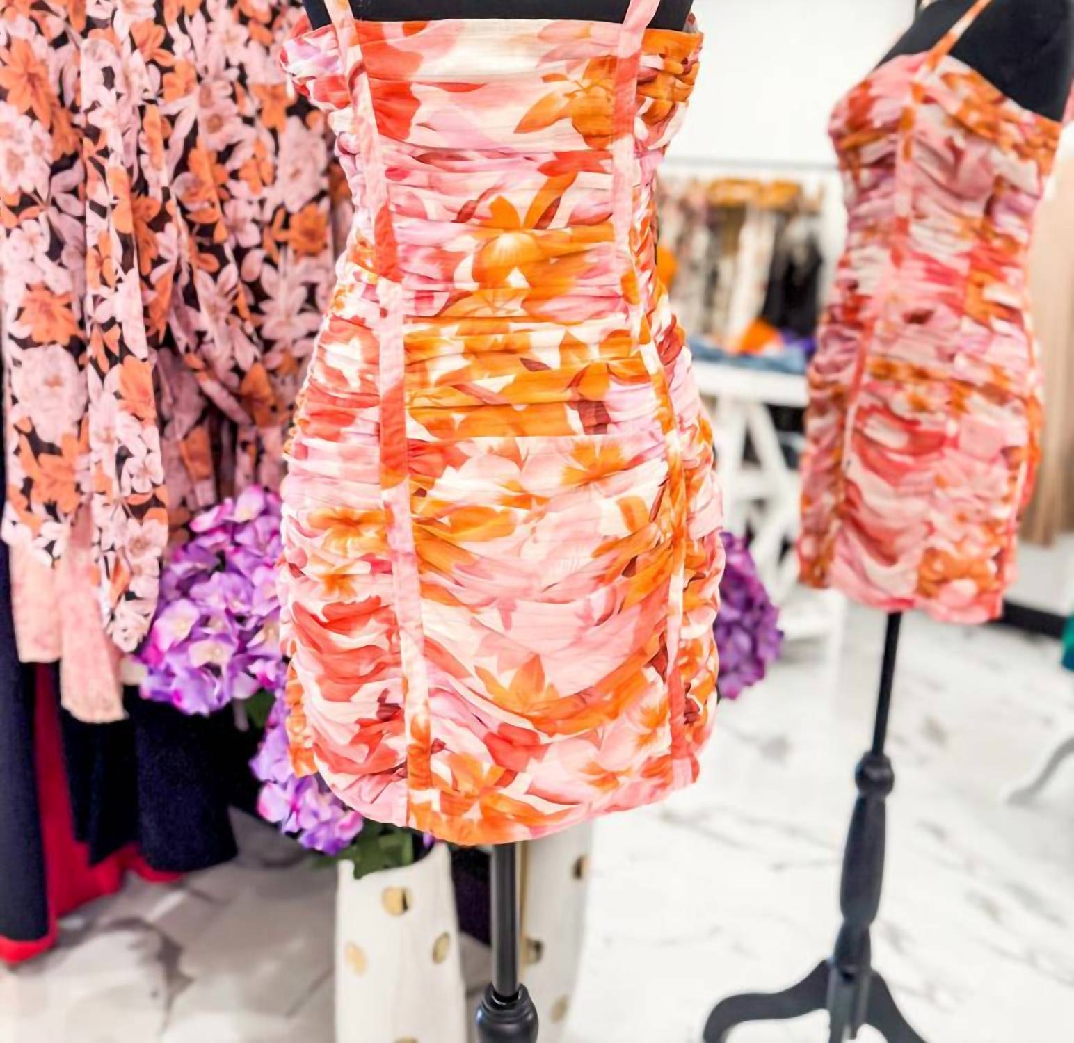 Короткое и воздушное платье для теплых дней. Мини-платье Gallop Glam Floral от STORIA - ваш идеальный выбор для летних вечеров благодаря яркому акварельному принту и элегантному квадратному вырезу. Это облегающее платье без рукавов с изысканными сборками и длиной мини создает кокетливый и игривый образ. Изготовленное из 100% полиэстера, оно обеспечивает удобную посадку и застежку-молнию сзади. Платье представлено в потрясающем ягодном оттенке. Дополните его любимым платком-ушанкой и сумочкой, чтобы создать эффектный образ. На модели представлен размер M, идеально подходящий для размеров 4-6.
