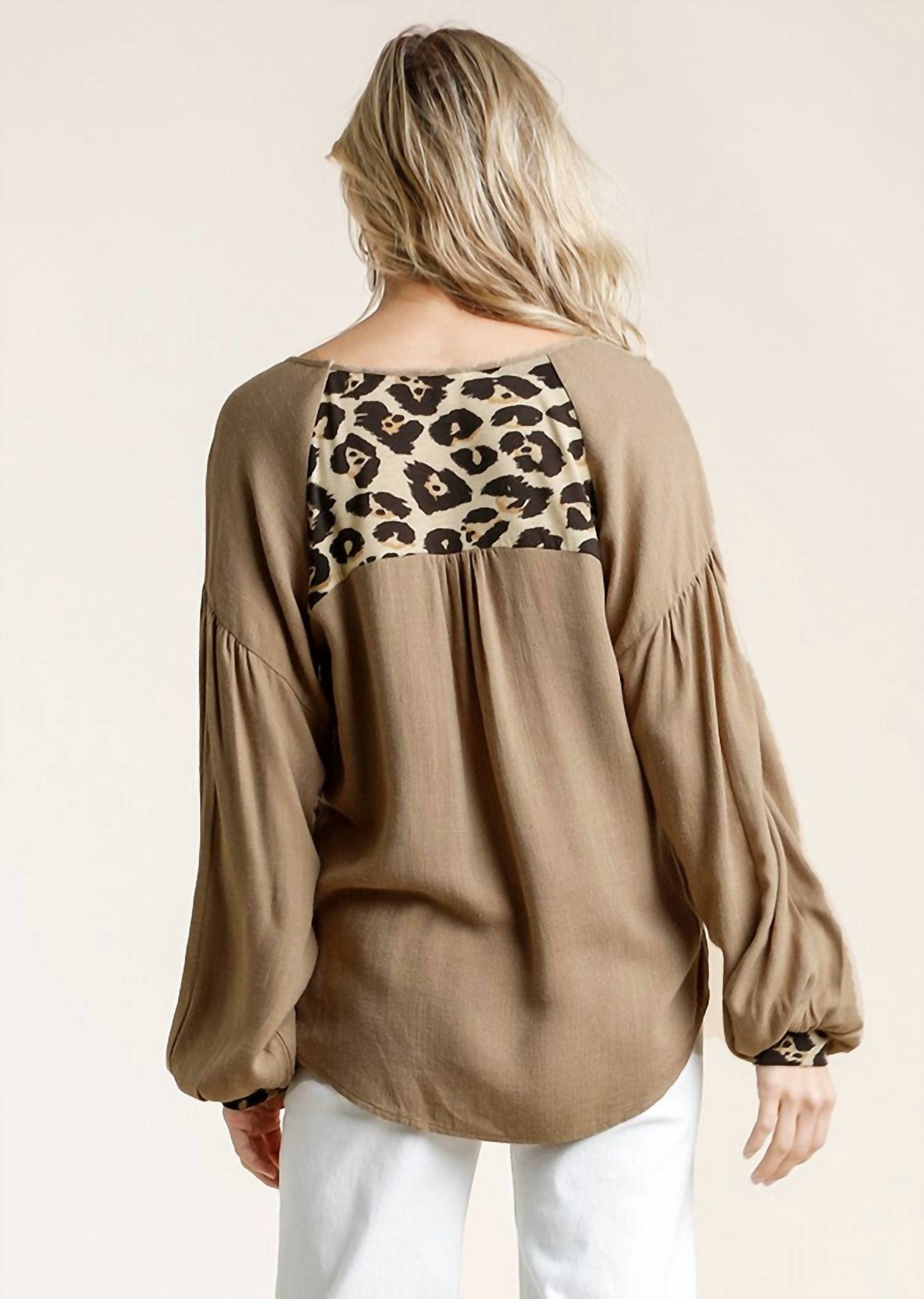 Длинный рукав, который можно носить с джинсами, юбками, да практически с чем угодно! Украсьте свой гардероб леопардовым принтом Umgee с длинным рукавом. Этот игривый леопардовый принт добавит изюминку любому образу. Этот топ из смеси льна (55% льна и 45% хлопка) обеспечивает свободную и комфортную посадку. Овальный вырез, рукава-фонарики с леопардовыми манжетами, а также асимметричный овальный подол и боковые разрезы создают стильный образ. Уход: ручная стирка в холодной воде или химчистка. Застежка: надевайте. Страна происхождения: импортная. Доступны размеры от S до 2X для свободного кроя.