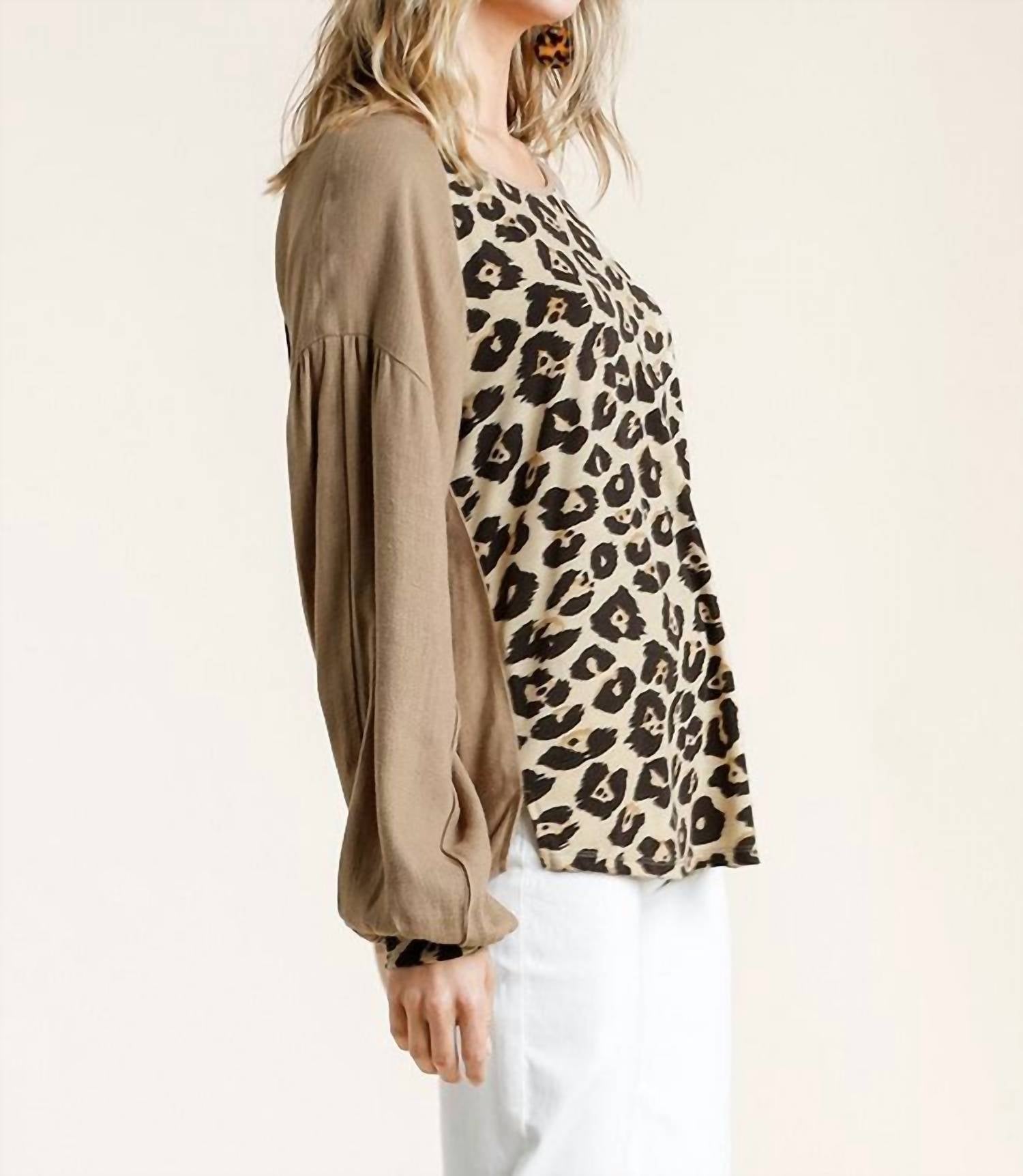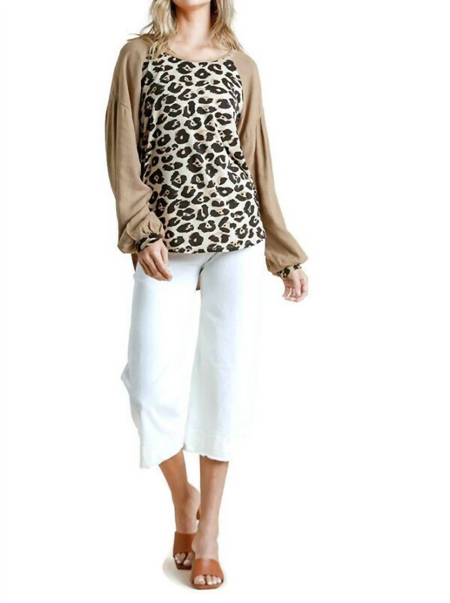 Леопардовый топ с длинным рукавом в бежевом цвете Umgee