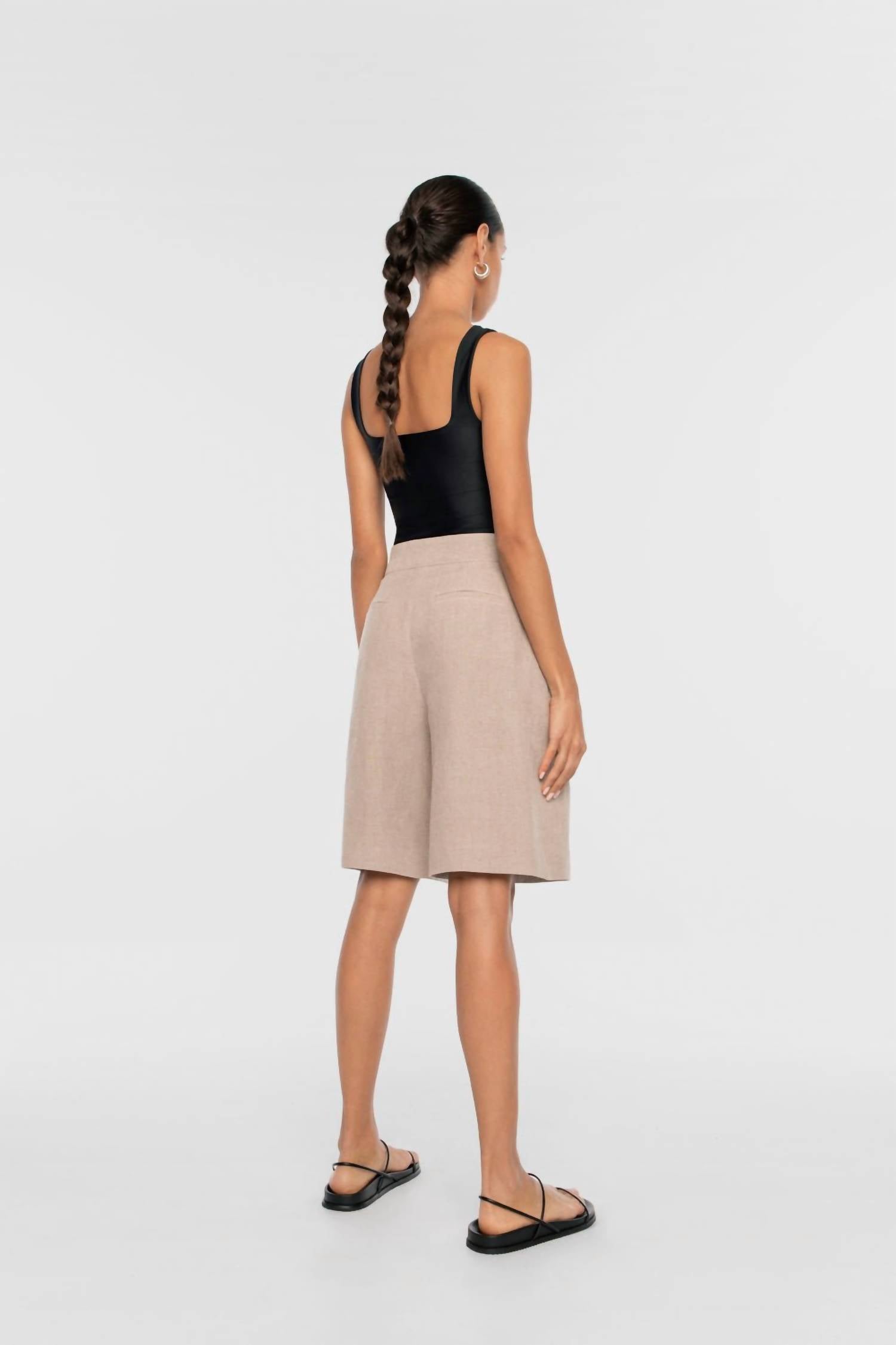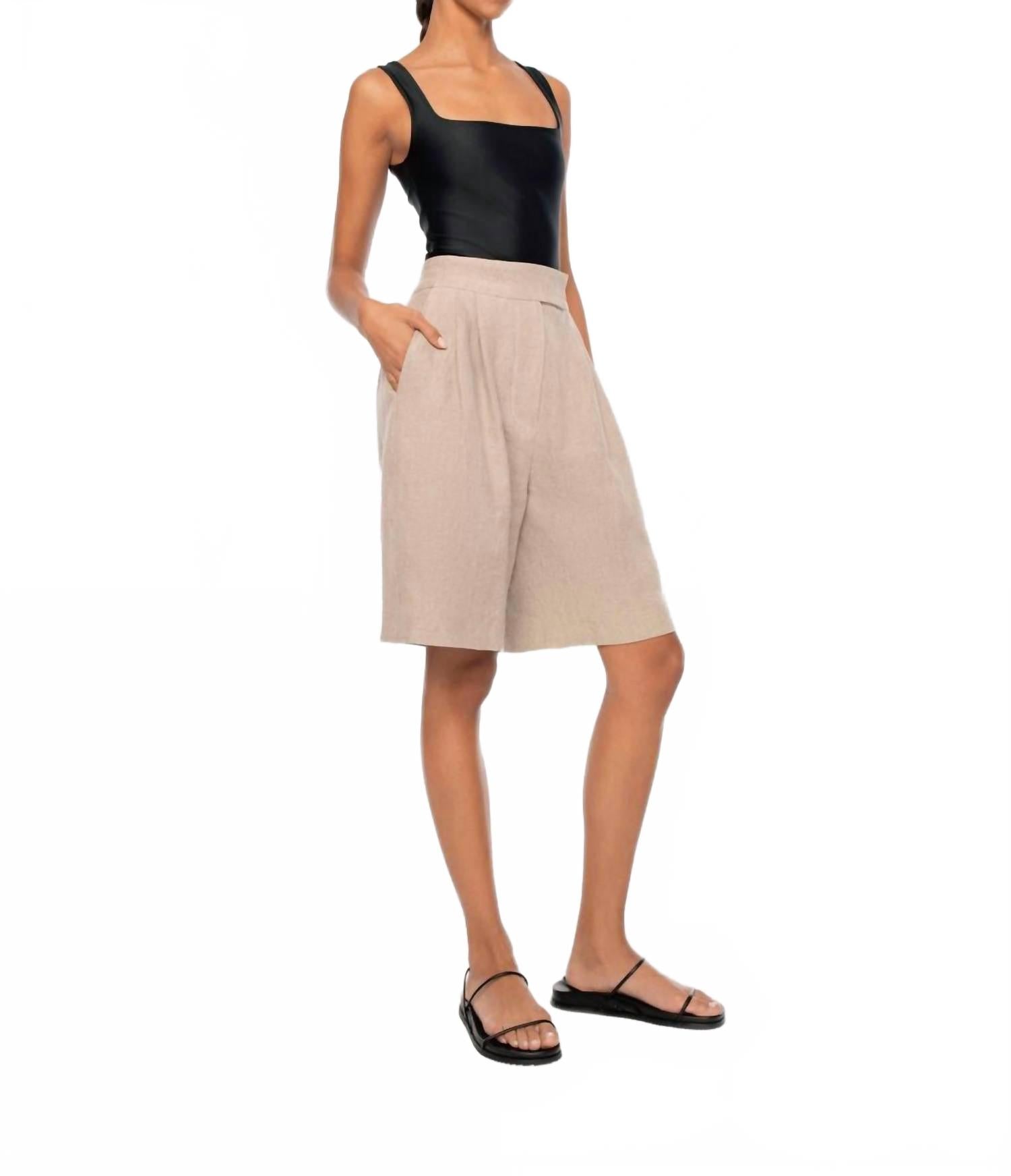 Эти шорты с высокой талией идеально сидят по фигуре, и нам они тоже понравятся. Откройте для себя изысканное очарование широких шорт Dāl the Label, созданных для женщин, ценящих минимализм. Эти шорты натурального цвета изготовлены из 100% льна, отличаются высокой талией и широким силуэтом со складками спереди и заутюженными стрелками по центру. Благодаря боковым накладным карманам и прорезным карманам сзади, шорты обеспечивают достаточно места для хранения. Застежка: потайной крючок по центру спереди. Уход: только химчистка, что делает их изысканным выбором для вашего гардероба для отпуска.