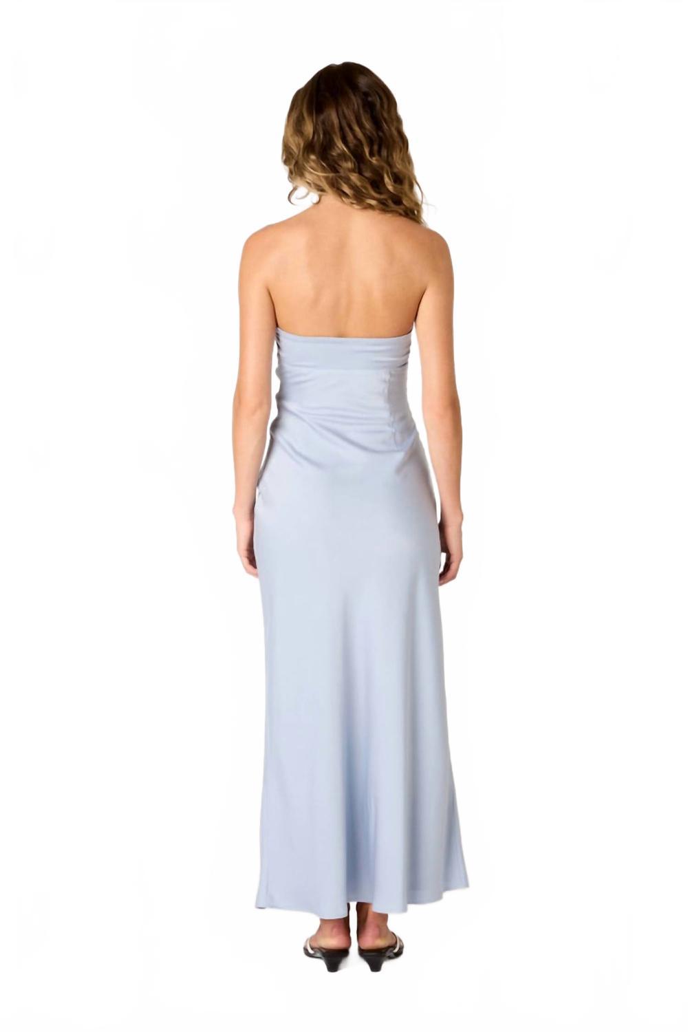 Представляем платье Tana Maxi Dress от NIA - великолепное изделие для элегантных вечерних мероприятий. Это платье без бретелек спокойного синего цвета отличается нежным лифом в форме сердца и изысканной сборкой, которая красиво подчеркивает изгибы вашей фигуры. Платье изготовлено из высококачественного 100% полиэстера, имеет А-силуэт длиной до щиколотки и струящуюся юбку на подкладке для дополнительного комфорта и роскоши. Застежка - боковая молния. Идеально подходит для демонстрации ключевого тренда этой весны - «тихой роскоши».