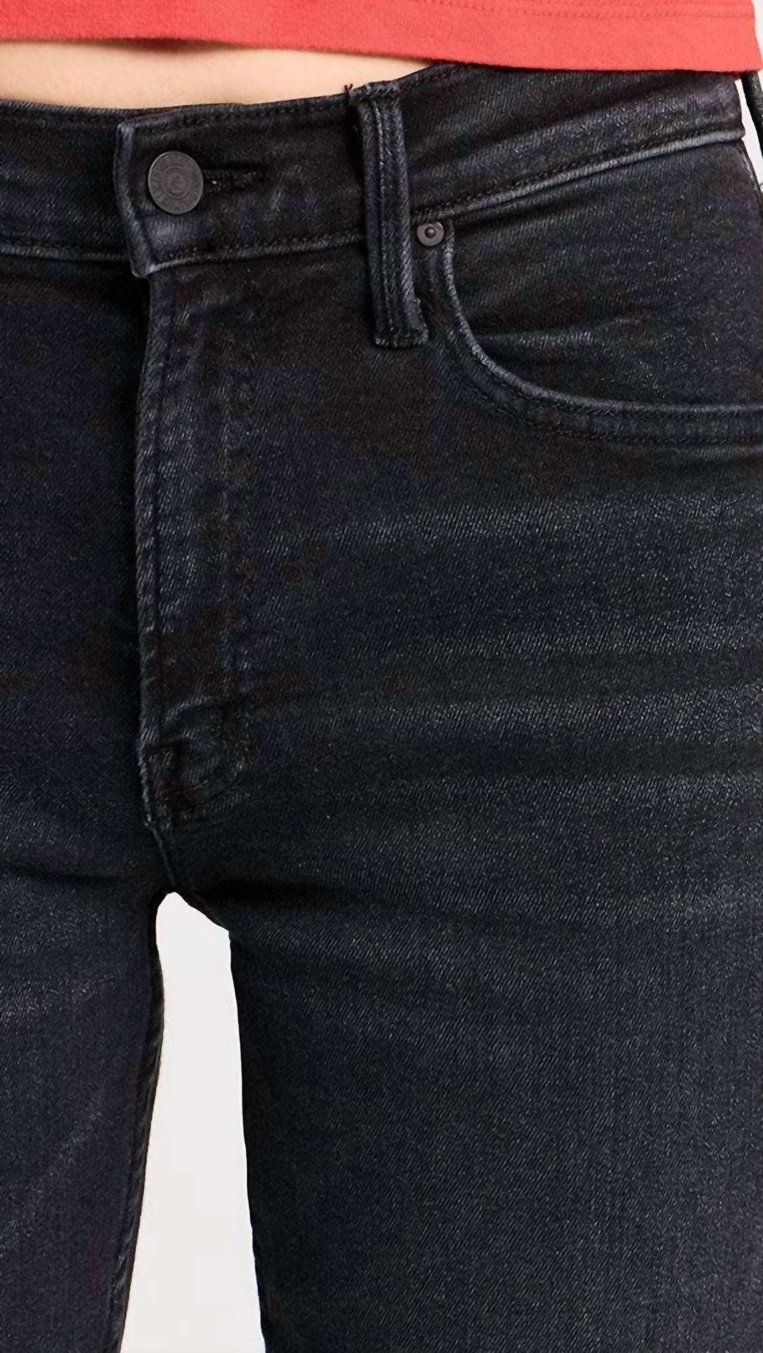 Высокая талия и узкие прямые штанины. Эти джинсы длиной до щиколотки, выполненные из хлопковой смеси, имеют элегантный темно-черный цвет Vroom и тональную фурнитуру для безупречного вида. Сделанные в США, они застегиваются на пуговицы и молнию, имеют пять карманов и идеально подходят для повседневной носки. Размеры от 26: посадка 23 см, длина внутреннего шва 76 см и ширина брючины 34 см обеспечивают идеальную посадку. Уход за ними прост: можно стирать в стиральной машине.