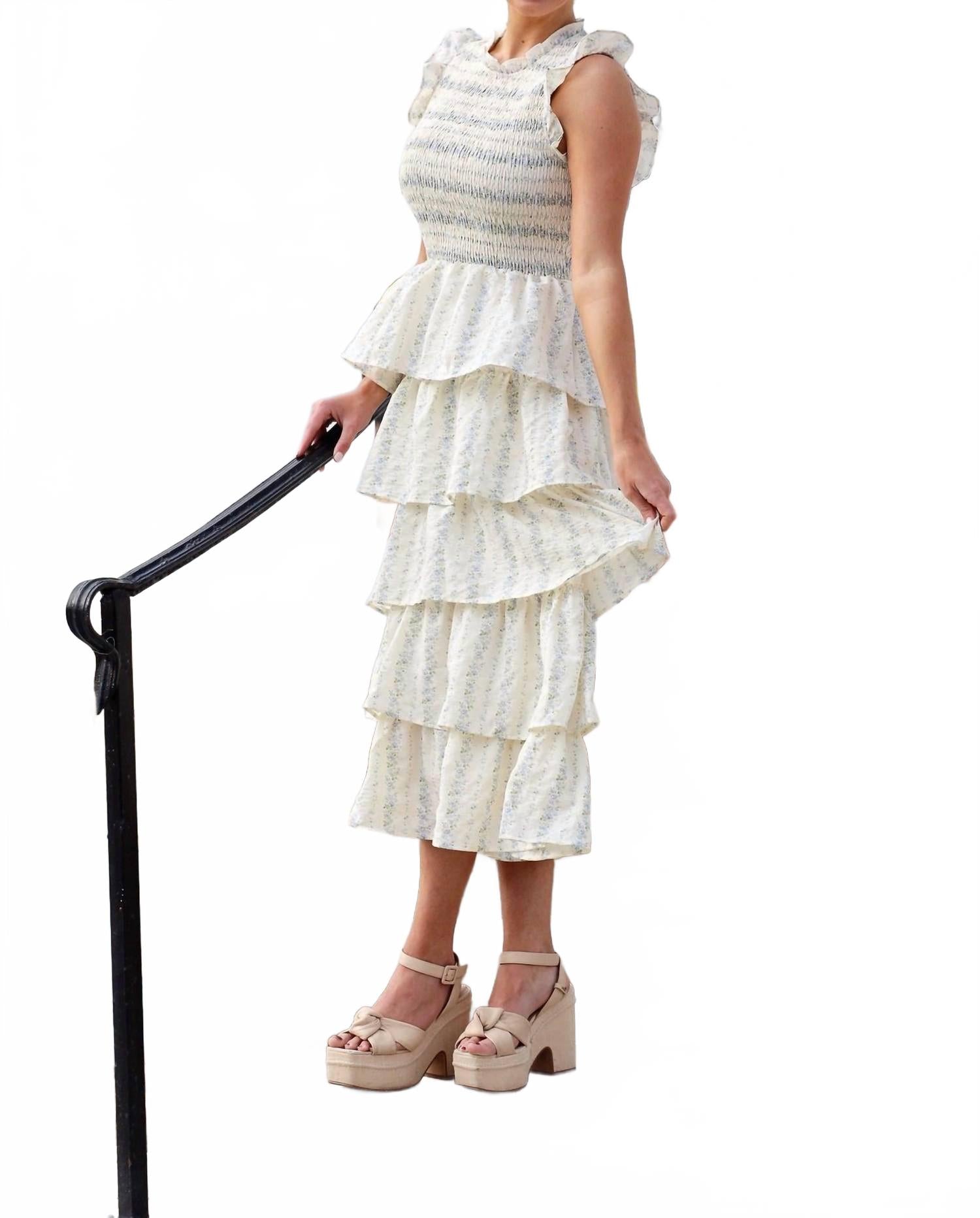Платье идеальной длины существует. Представляем платье миди Eleanor от TCEC - шедевр с цветочным принтом, идеально подходящий для весенних встреч. Это платье миди без рукавов, облегающего кроя с расклешенной юбкой, с присборенным лифом, круглым вырезом и многоярусной юбкой с воланами. Платье изготовлено из 100% полиэстера с подкладкой из смеси 97% полиэстера и 3% спандекса. Платье украшено очаровательным вырезом-замочной скважиной сзади и оборками. Застежка: пуговицы. Уход: машинная стирка. Идеально подходит для особых случаев, таких как вечеринки в честь рождения ребенка или Дня матери.