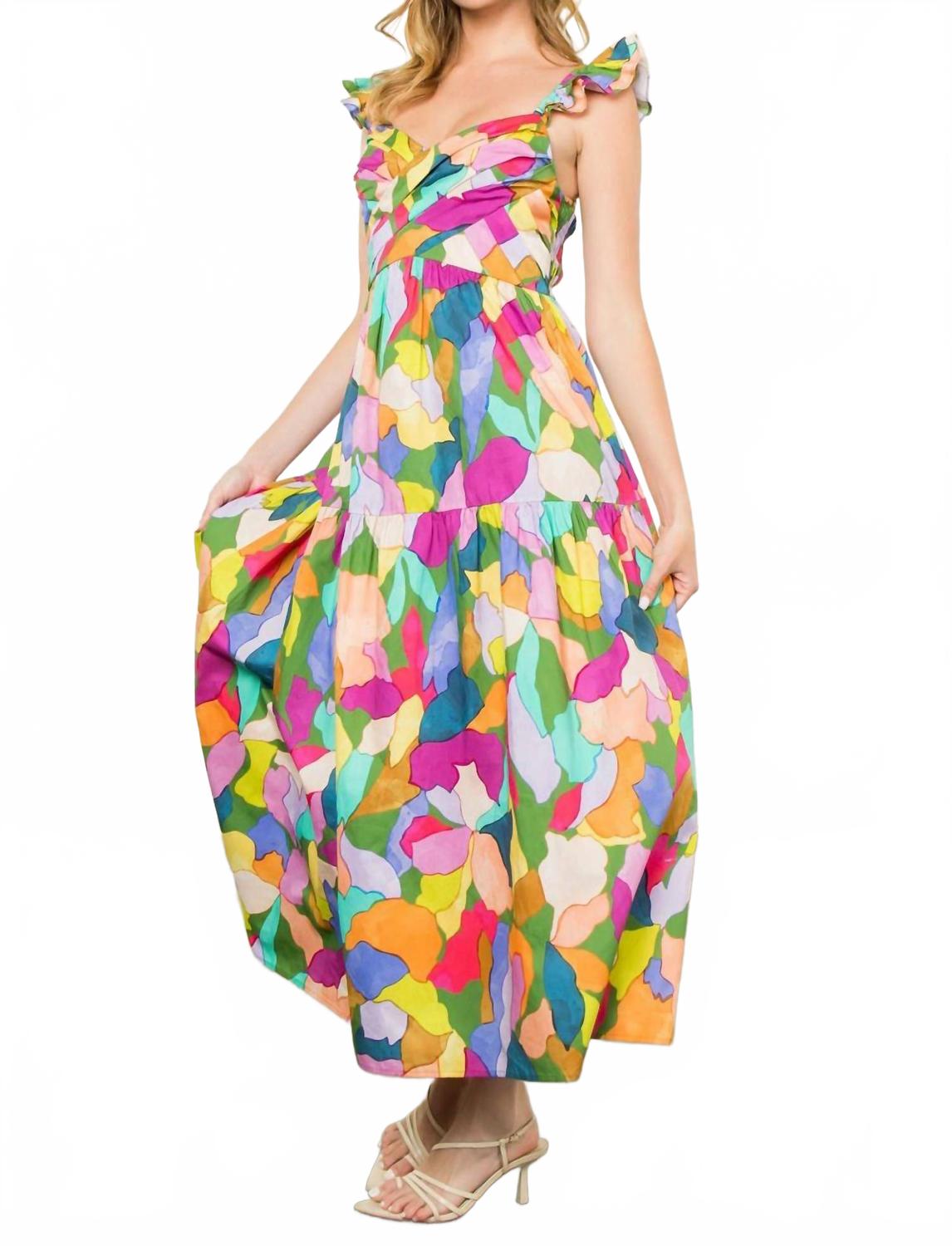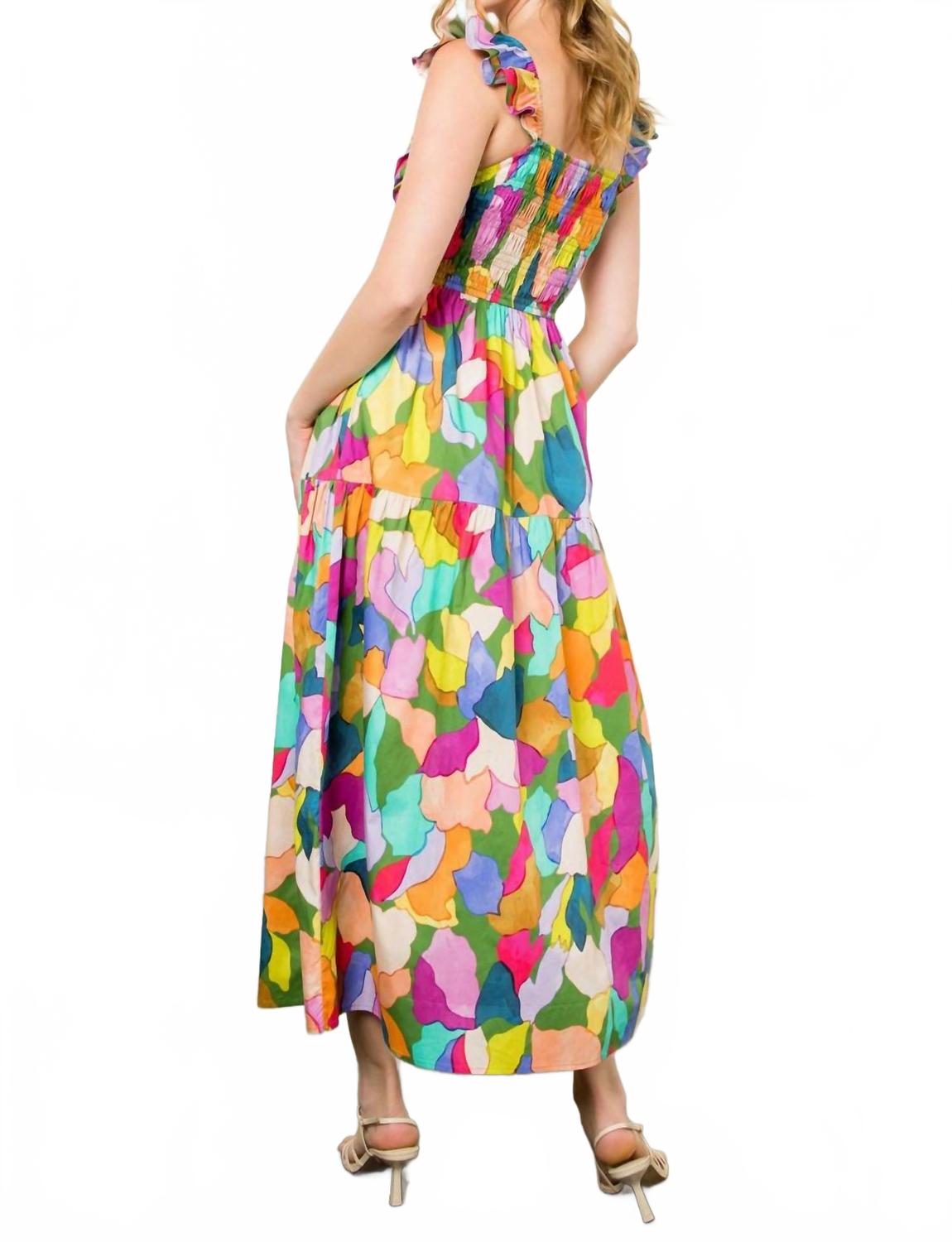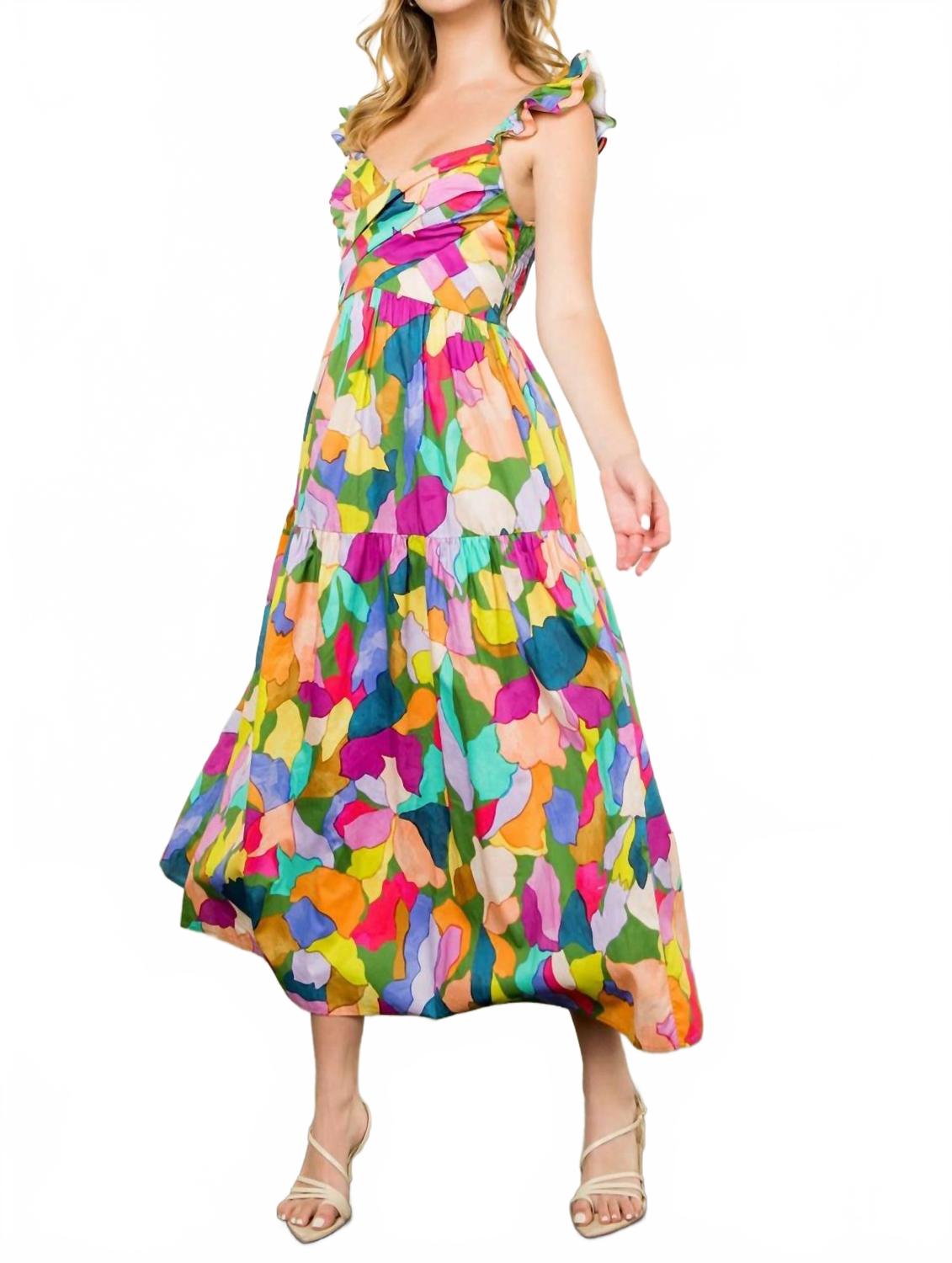 Просто добавьте шлепанцы или мюли, и все готово. Подчеркните свой стиль с платьем миди с цветочным принтом THML Arden - женственной вещью, идеально подходящей для любого весеннего случая. Это разноцветное платье с узором, короткими рукавами и вырезом в форме сердечка идеально подходит для званого ужина в честь Дня благодарения или любой другой шикарной вечеринки. Платье изготовлено из 100% полиэстера, имеет А-образный силуэт с многоуровневым кроем и присборенной спинкой, придающей образу изысканность. Платье изначально застегивается на застежку-липучку и легко поддается машинной стирке.
