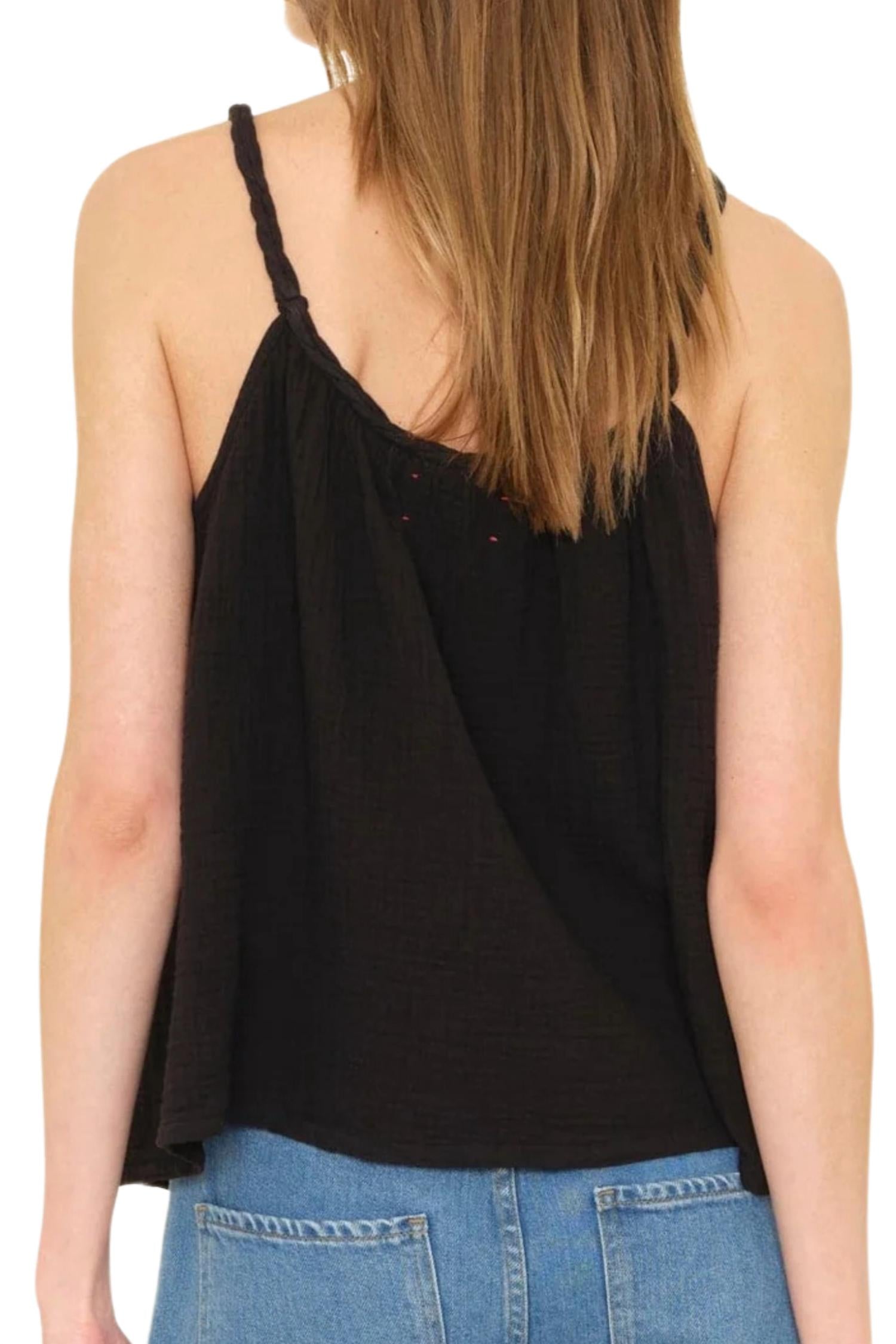 Представляем майку Brandi Tank от Xirena - идеальный выбор для вашего фестивального гардероба. Эта майка без рукавов изготовлена из 100% хлопка Chelsea Gauze, мягкого и слегка жатого на ощупь, обеспечивая непревзойденный комфорт. Сделано в Лос-Анджелесе. Майка имеет стильную витую косу на горловине и бретелях. Однотонный черный цвет делает ее универсальной. Простая в уходе: стирайте в стиральной машине в холодной воде на щадящем режиме и сушите на горизонтальной поверхности. Надевайте. Размер соответствует.