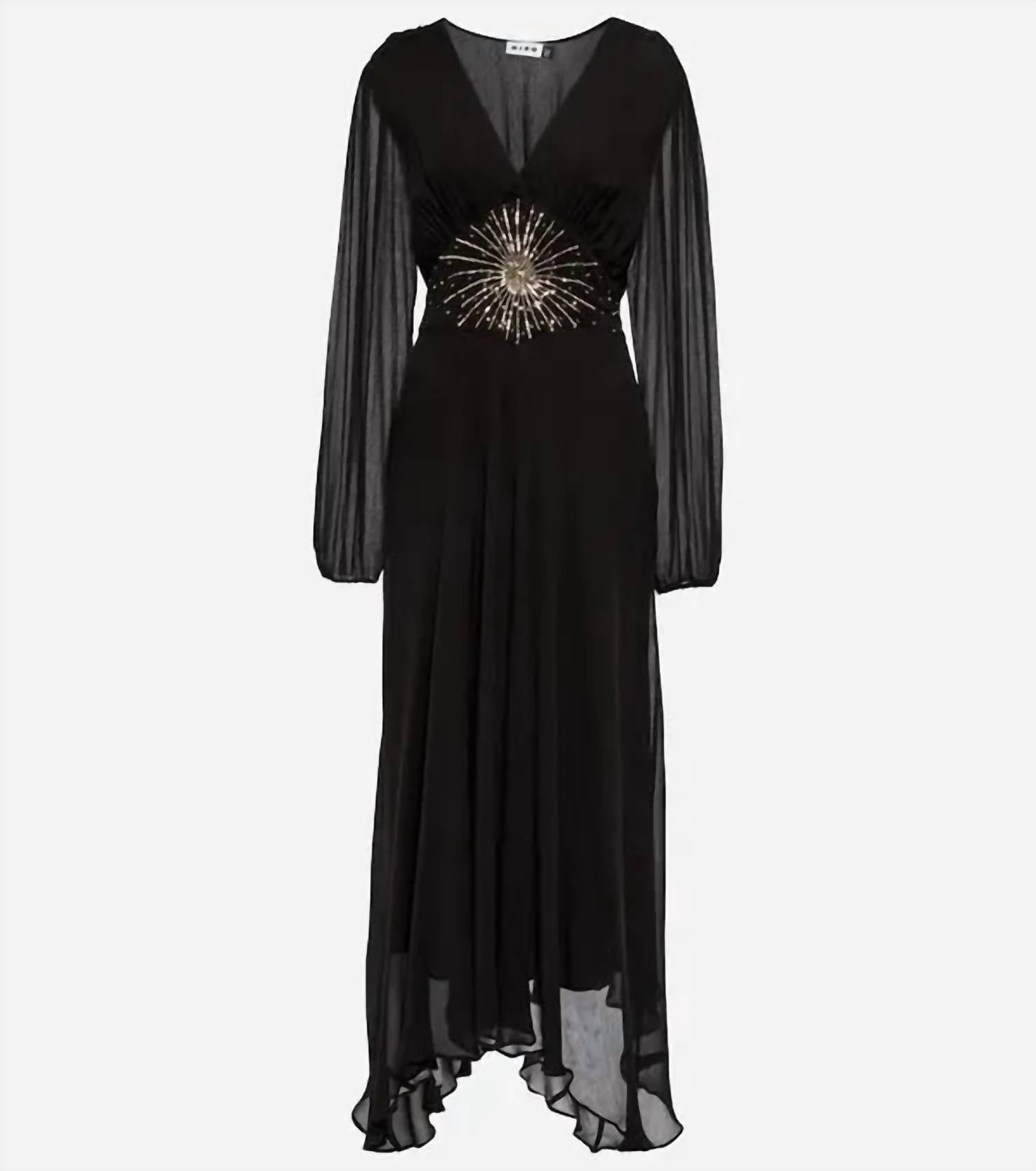 Представляем макси-платье Christie с отделкой из шифона от Rixo - эффектное украшение, идеально подходящее для вашего следующего званого ужина или празднования Нового года. Это изысканное платье с длинными рукавами и изысканным V-образным вырезом выполнено из 100% вискозы, что придает ему роскошный вид. Длина макси-платья подчеркнута поясом на завязке сзади и стильной застежкой-молнией сбоку, а эффектная контрастная отделка в виде звезд добавляет нотку гламура. Для ухода за этим изящным нарядом рекомендуем только химчистку.