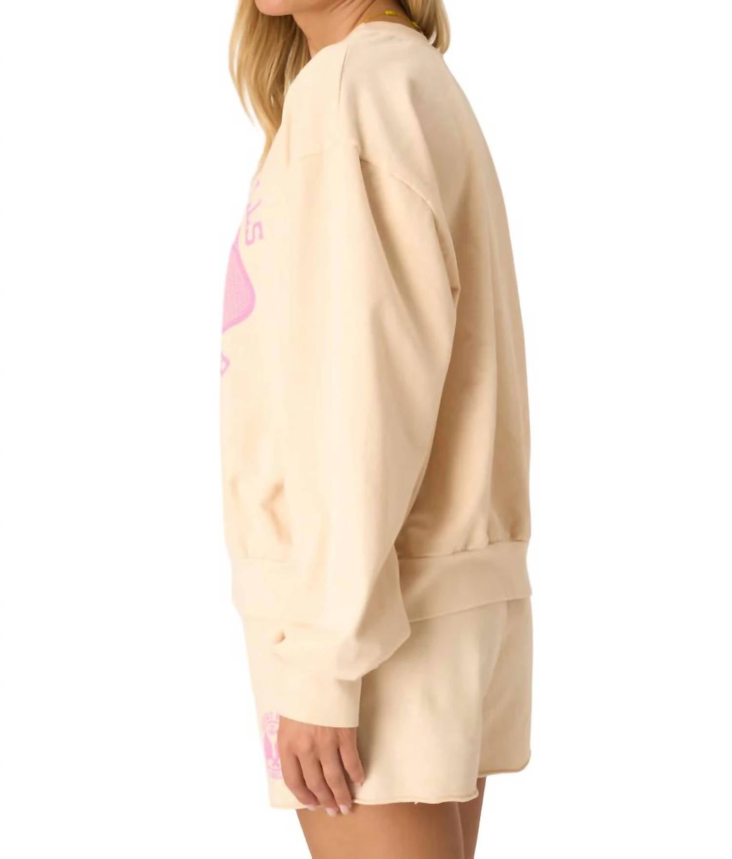 Этот свободный топ с круглым вырезом, рукавами реглан и манжетами и подолом, украшенными трафаретным принтом. Изготовлен из хлопкового трикотажа для малышей (френч терри). Размер S: длина по переду от плеча 23 дюйма, обхват груди 25 дюймов. Для свободного кроя выбирайте на размер больше. Модель Пейдж ростом 175 см, обхват груди 32 дюйма, обхват талии 23,5 дюйма и обхват бедер 34 дюйма, размер S. Состав: 82% хлопок, 13% полиэстер, 5% спандекс. Стирать в стиральной машине в холодной воде.