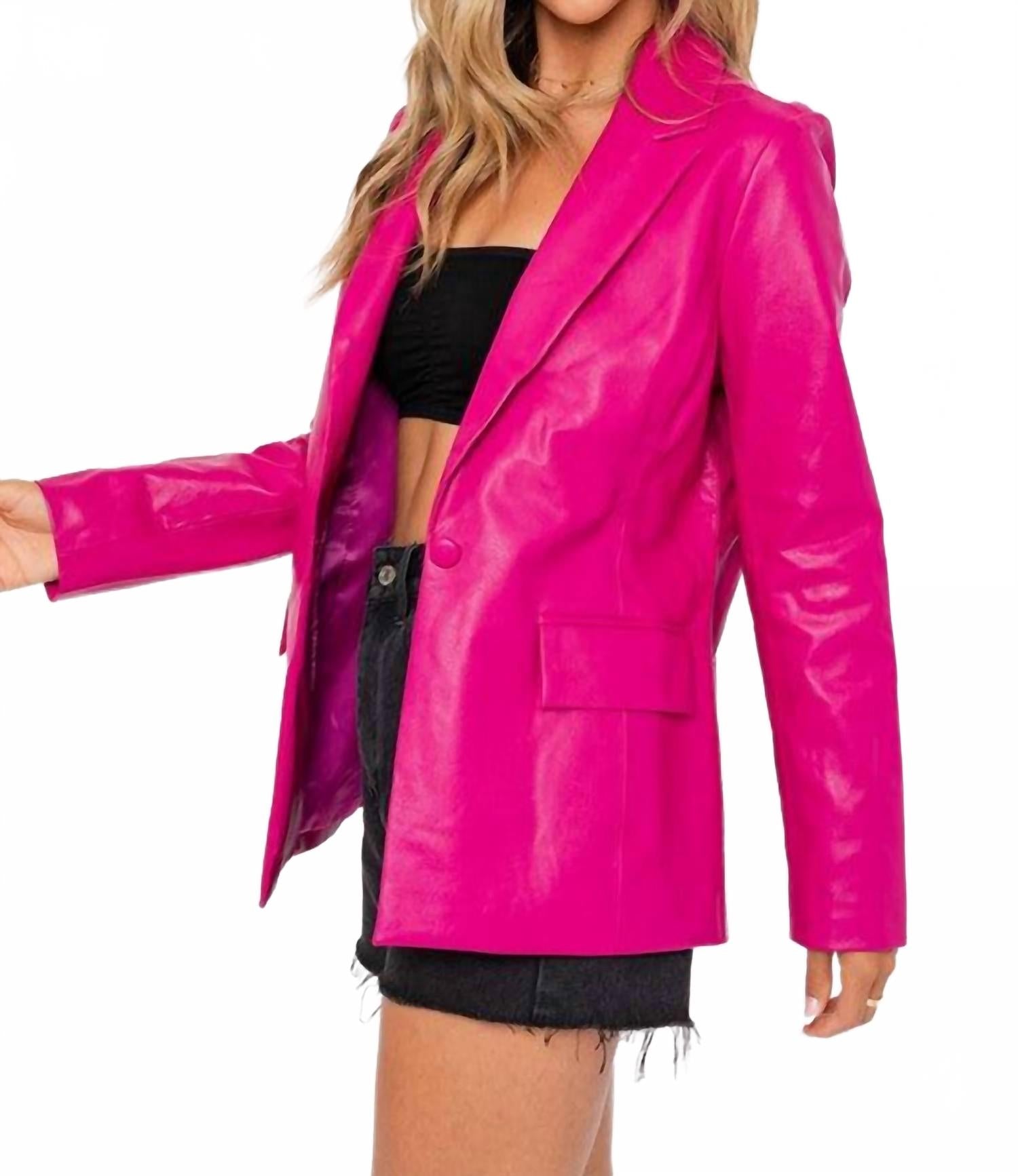 Подчеркните свой стиль с помощью блейзера Dylan Vegan Leather от LE LIS - потрясающей модели яркого пурпурного цвета. Этот блейзер с длинными рукавами и застежкой на пуговицы изготовлен из мягкой искусственной кожи, которая сочетает в себе комфорт и изысканность. Он идеально подходит для осени и вдохновлен модой 90-х, а также имеет функциональные карманы для дополнительного удобства. Этот блейзер идеально подходит для музыкального фестиваля или празднования Дня святого Валентина, он неизменно привлечет внимание.