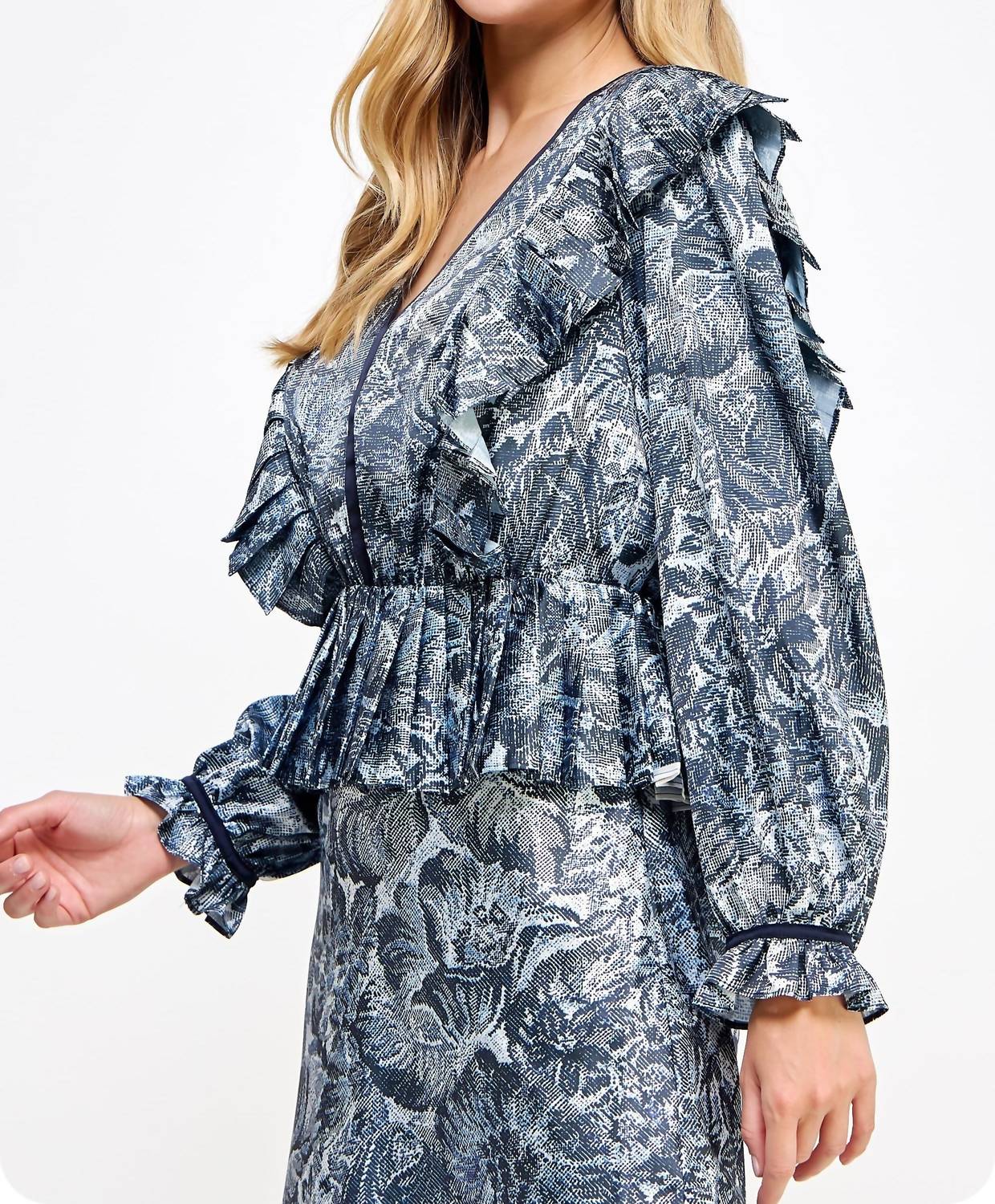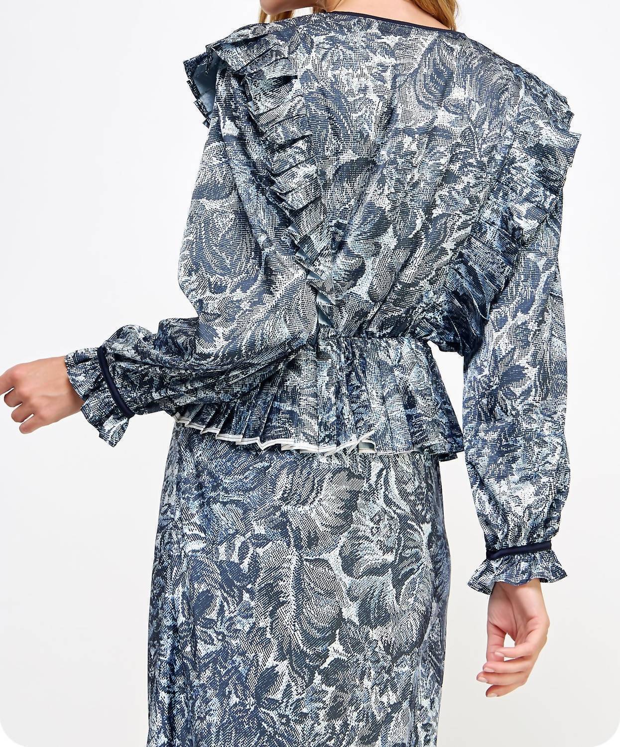 Блузка вне времени, которая никогда не выйдет из моды. Представляем топ Marni от Strut & Bolt - очаровательное дополнение к вашему гардеробу. Эта блузка с длинными рукавами и игривым цветочным принтом в виде гобелена выполнена из роскошного атласа с яркой контрастной окантовкой и оборками. Приталенный силуэт, эластичная талия и застежка-липучка обеспечивают удобство при ношении. Ухаживайте за этой стильной блузкой вручную, чтобы она сохранила свою элегантность и привлекательность. Идеальный размер для женщин: обхват груди 32-37 дюймов, талии 27-31 дюйм и обхват бедер 36-41 дюйм.