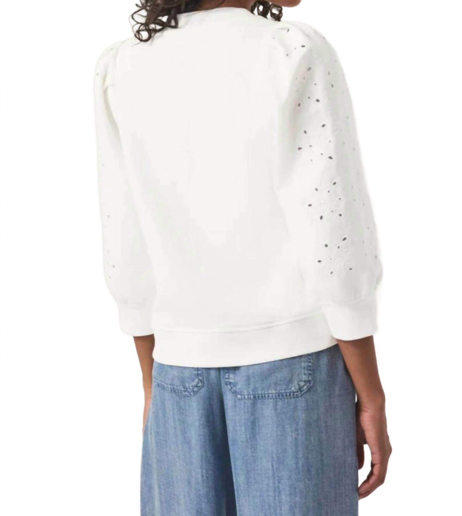 Прохладная погода требует многослойности, и нам нравится эта очаровательная толстовка по всем очевидным причинам. Дополните свой повседневный гардероб вышитой толстовкой Rory от Splendid - идеальным сочетанием стиля и комфорта в классическом белом цвете. Эта толстовка с длинными рукавами-буфами длиной три четверти, украшенными изящными люверсами, добавит вашему образу нотку женственности. Изготовлена ​​из мягкого французского трикотажа (60% хлопка и 40% полиэстера), имеет круглый вырез, манжеты и низ с резинкой для безупречного вида. Уход очень простой: следите за машинной стиркой.