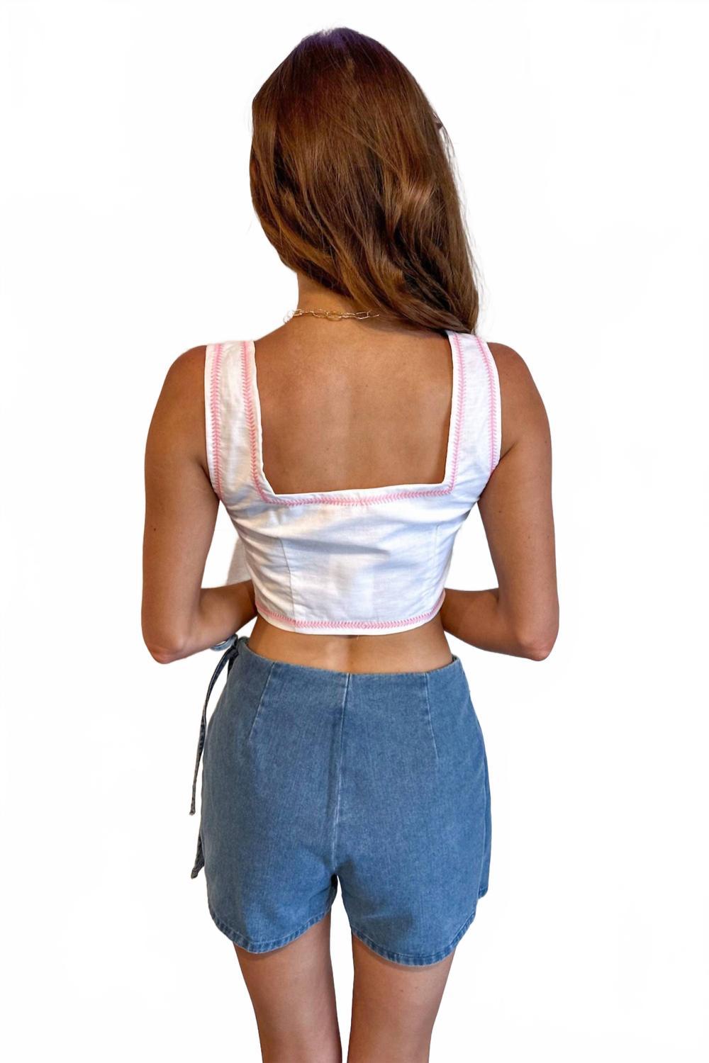 Сочетайте эту модель с любимыми джинсами и шлепанцами для следующей девичьей вечеринки. Добавьте изысканности своему весеннему гардеробу с топом Flower Fields от Olivaceous, созданным для стильной садовой вечеринки. Эта блузка без рукавов, сшитая из смеси 50% льна и 50% хлопка, украшена цветочным узором, передающим дух цветущих лугов. Квадратный вырез дополнен завязкой, что создает очаровательный образ в стиле бохо-шик, идеально подходящий для отпуска или неформальной прогулки. Уход: ручная стирка в мягком моющем средстве, сушка на веревке, глажка теплым утюгом для придания блеска.