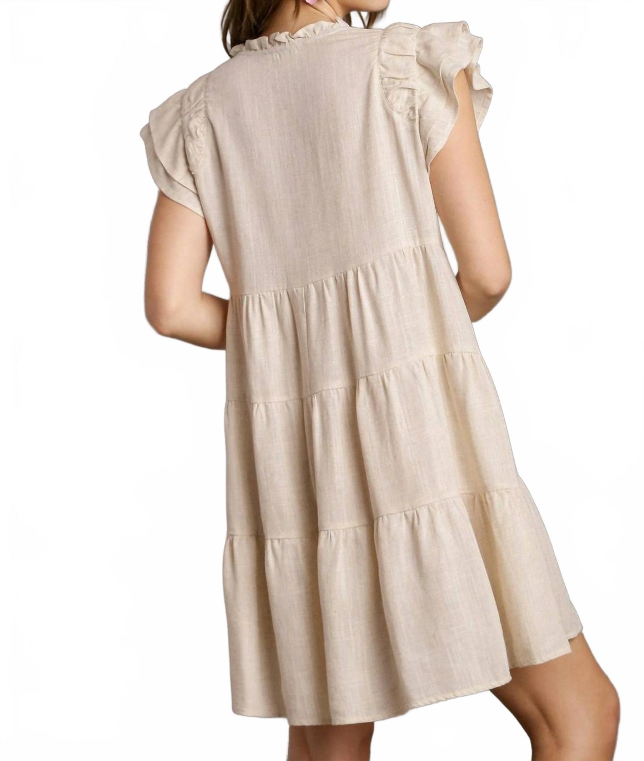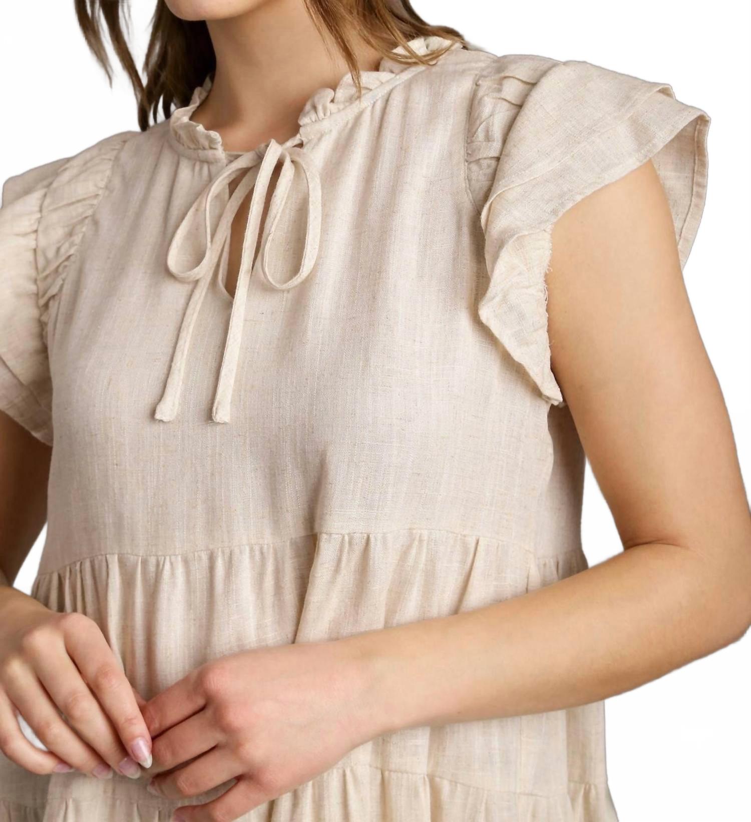 Льняное мини-платье трапеция в цвете овсянка Umgee, Oatmeal
