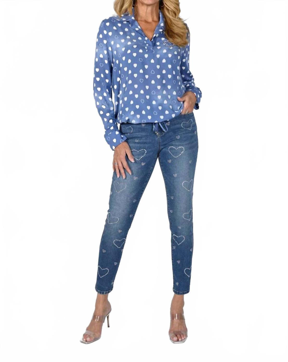 Каждому нужна хорошая пара узких джинсов, и эта модель будет вам по душе в любое время года. Дополните свою коллекцию джинсов брюками Frank Lyman Denim Pant изысканного средне-синего цвета. Эти брюки облегающего кроя со средней посадкой и стандартным поясом на застежке и пуговице создают привлекательный силуэт. Состав: 70% хлопок, 26% полиэстер, 2% вискоза и 2% эластан, они комфортны и стильны. Эти джинсы канадского производства с передними и задними карманами и игривым сердечком из пайеток идеально подойдут для элегантного образа на осень. Застежка: молния. Уход: машинная стирка.