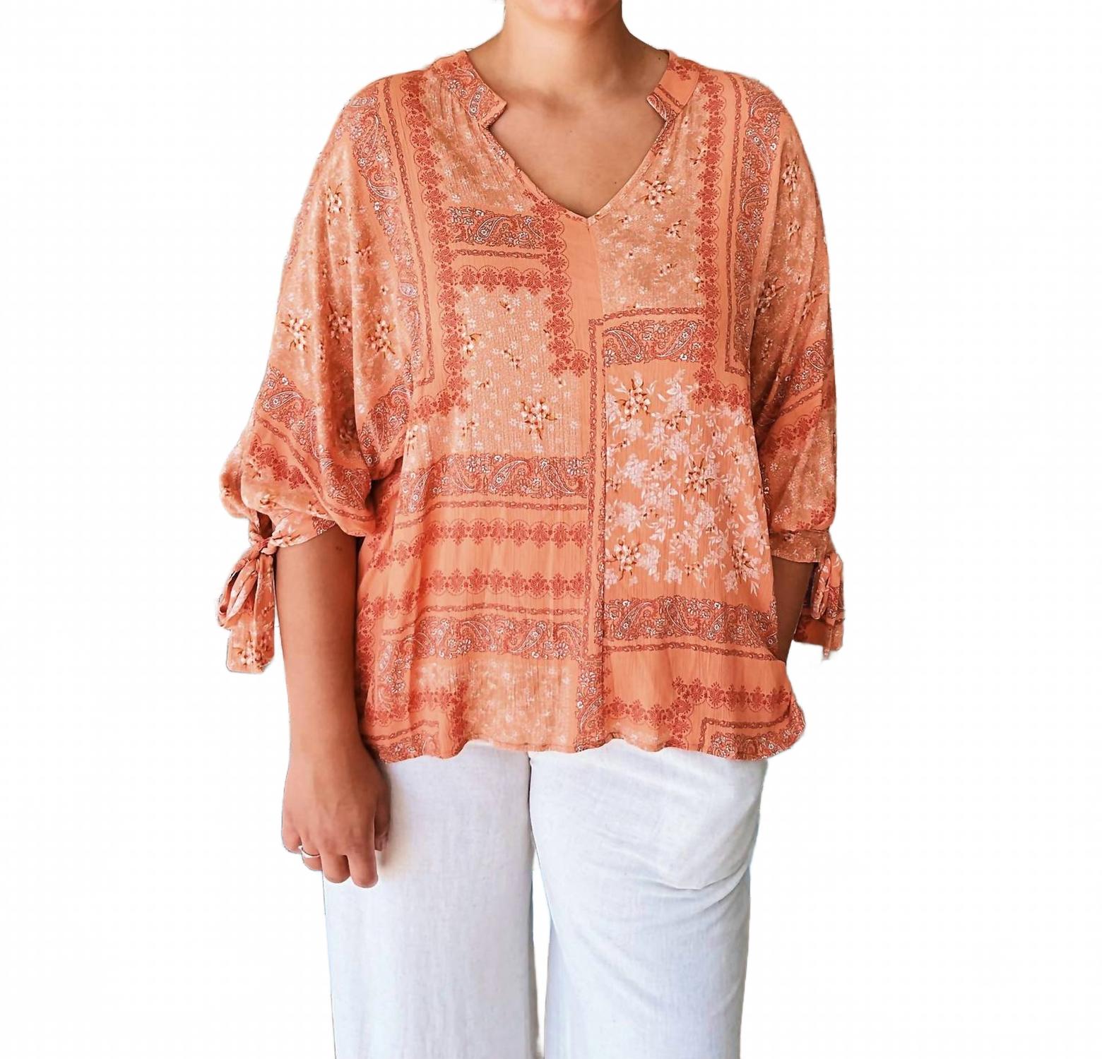 Бохо топ с узором пейсли - плюс в коралловом цвете Reneec.