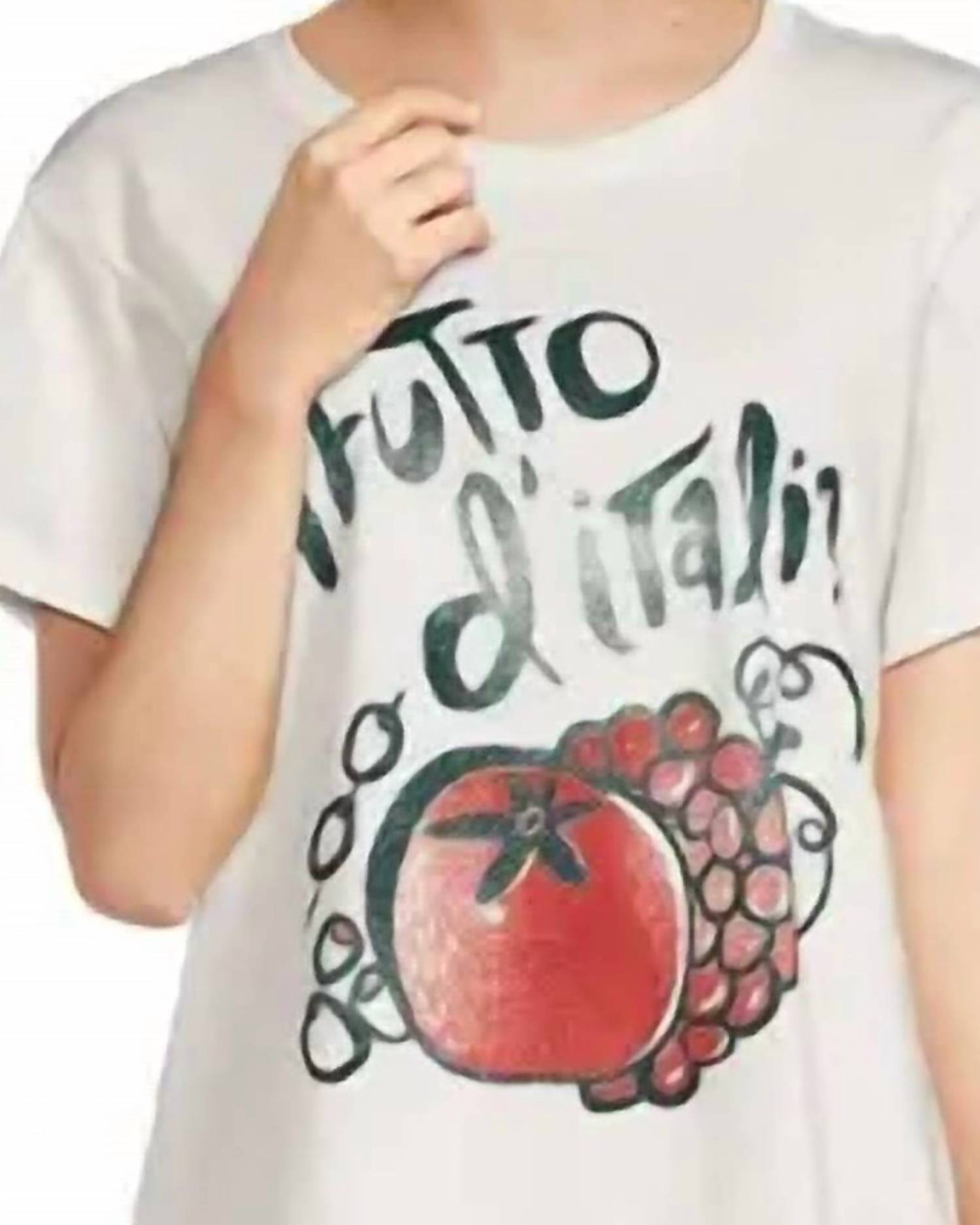 Эта классическая футболка с коротким рукавом станет вашим незаменимым предметом гардероба в этом сезоне и в будущем. Футболка Frutto D Italia от PRINCE PETER - стильное дополнение к любой коллекции уличной одежды, идеально подходящее для летнего отдыха. Эта женская футболка с коротким рукавом белого цвета с графическим принтом и классическим круглым вырезом горловины выполнена из 100% хлопка. Благодаря удобному крою, футболка легко надевается и обеспечивает комфорт в течение всего дня. Рекомендации по уходу: машинная стирка и сушка в разложенном виде на горизонтальной поверхности.