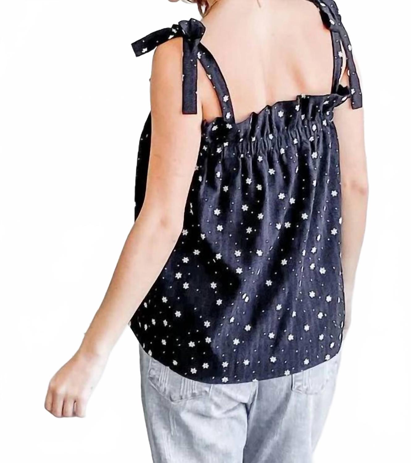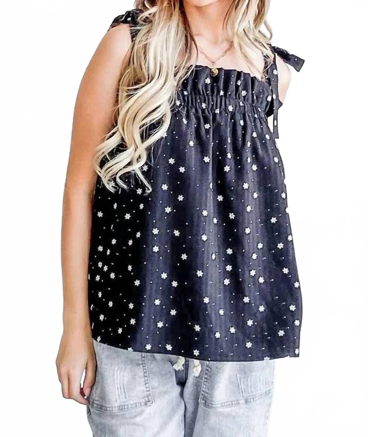 Посадка, ткань и функциональность. Эта майка отвечает всем требованиям. Дополните свой гардероб стильной майкой с оборками и принтом «Ромашки» от And The Why - незаменимым предметом гардероба на лето. Эта безрукавка идеально подходит для пляжного отдыха или празднования Дня благодарения. Она украшена очаровательным узором в горошек, игривыми оборками и имеет квадратный вырез. Изготовленная из 100% полиэстера, она оснащена удобной завязкой-лентой для надежной посадки. Для удобства ухода за этой легкой и удобной майкой можно стирать в стиральной машине и сушить в стиральной машине.